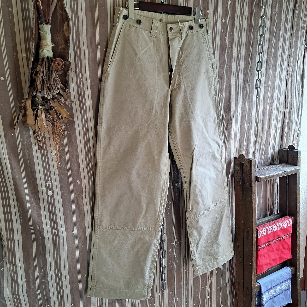 ●実寸(平置き):ウエスト37.5×2 cm 股下77cm わたり幅34.5cm 総丈102cm