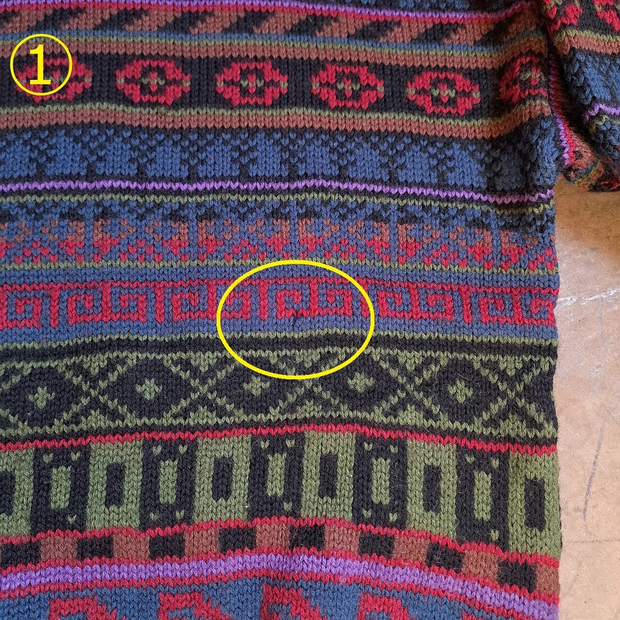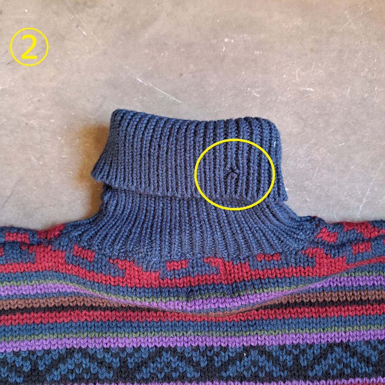 ●状態:①前身頃リペアあり。②首後ろリペアあり。