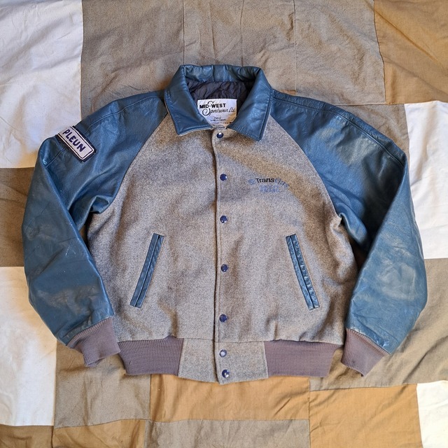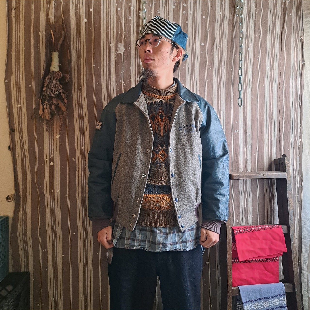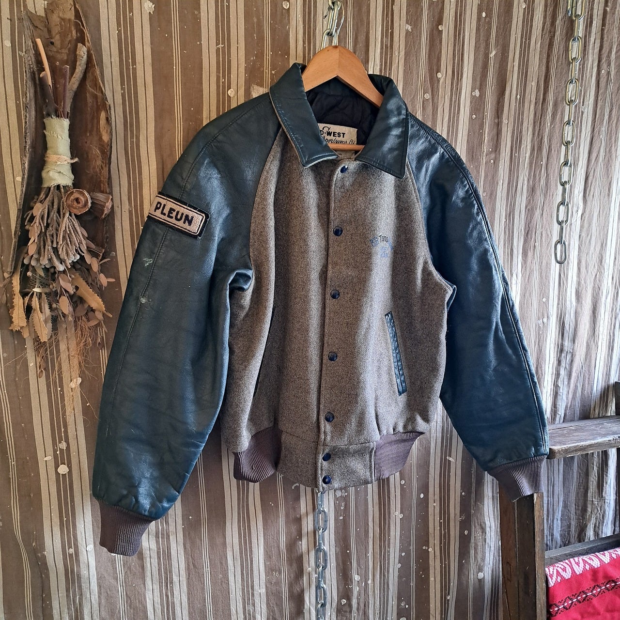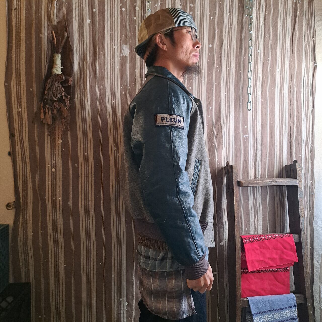 カナダ製 "PLEUN" 企業刺繍 レザー&ウールスタジャン used [512016]