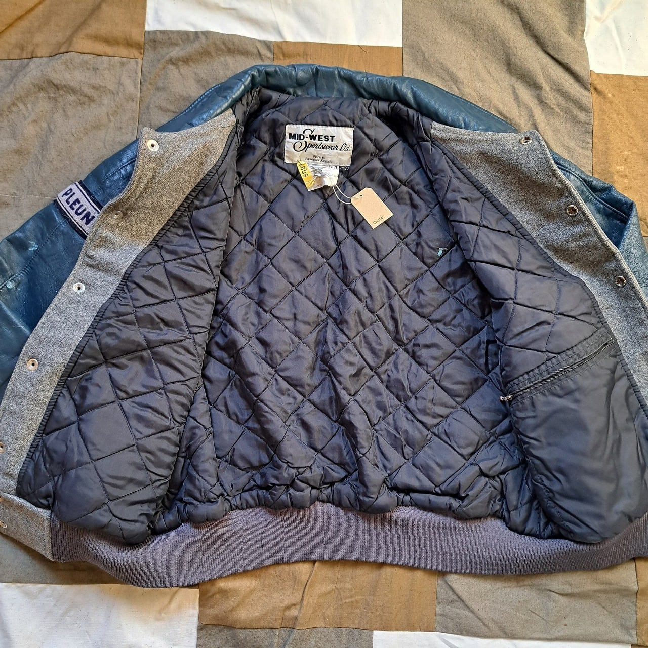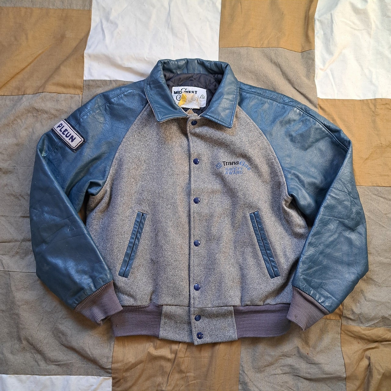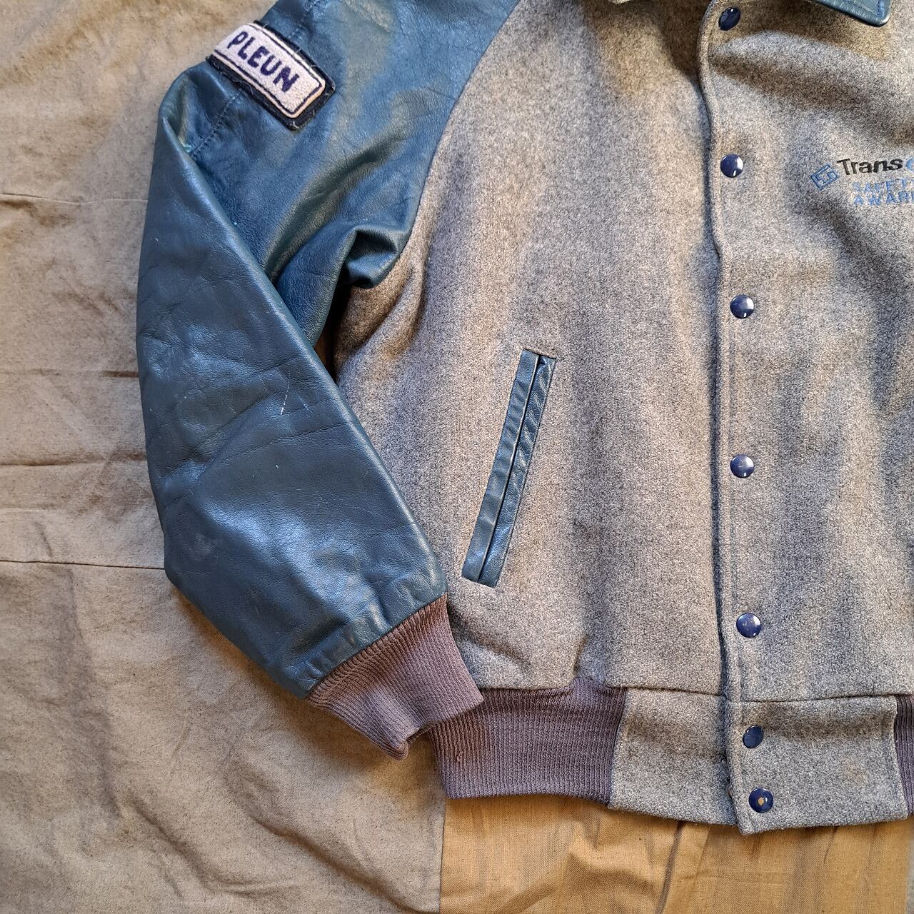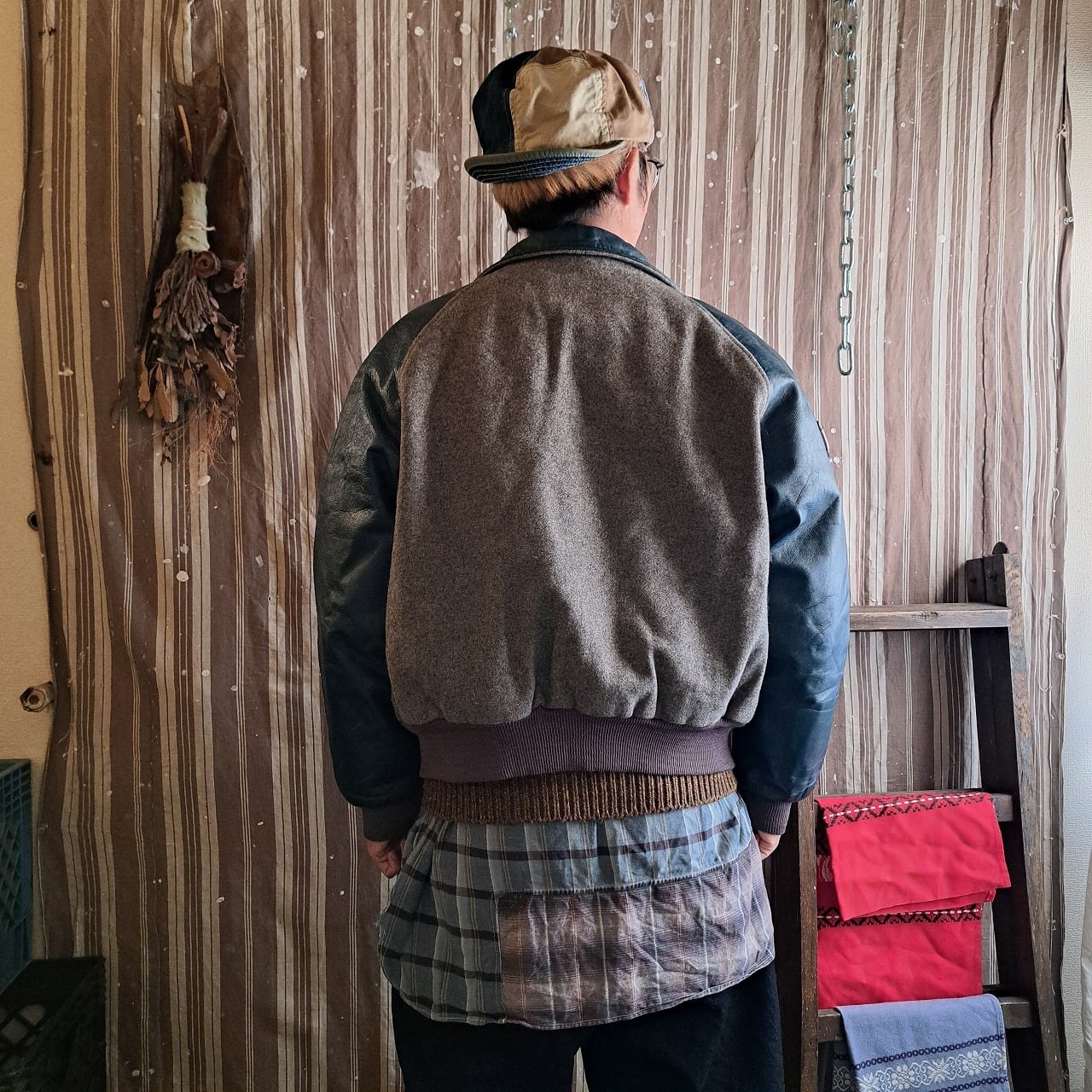 カナダ製 "PLEUN" 企業刺繍 レザー&ウールスタジャン used [512016]