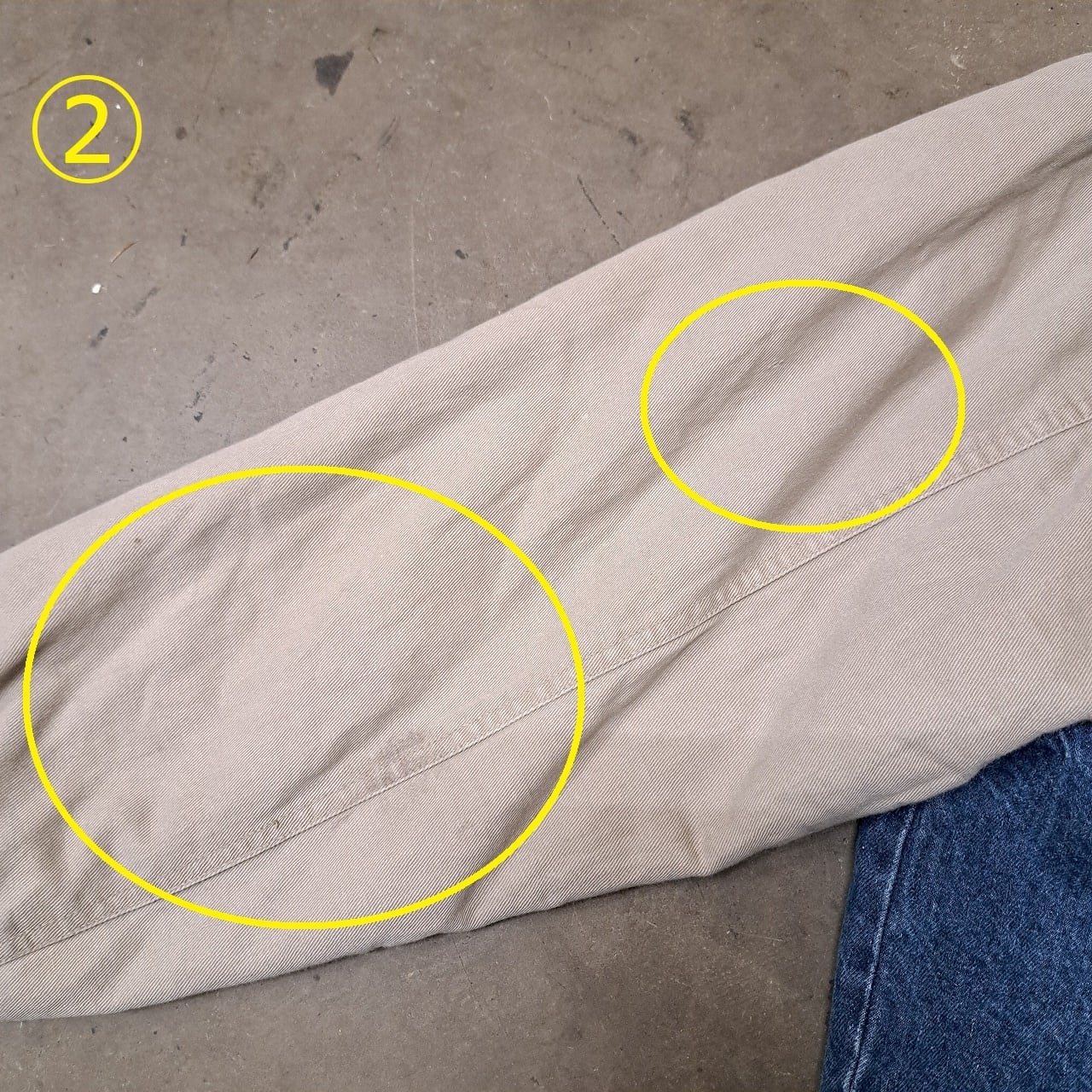 ●状態:①右袖汚れあり。②左袖ピンホール、汚れあり。