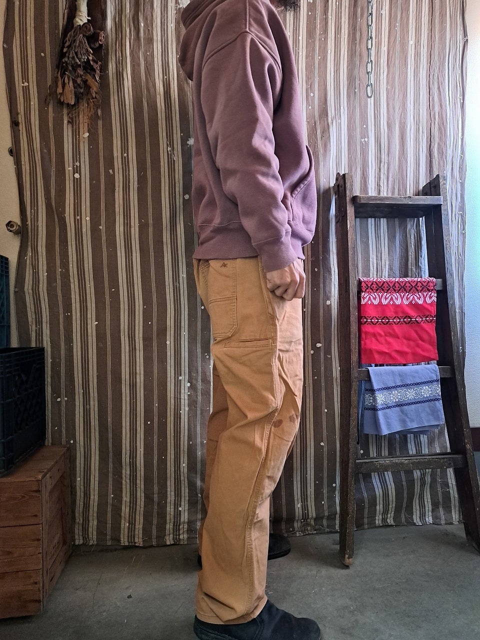 ●実寸(平置き):ウエスト47.5×2 cm 股下77cm わたり幅34.5cm 総丈104.5cm