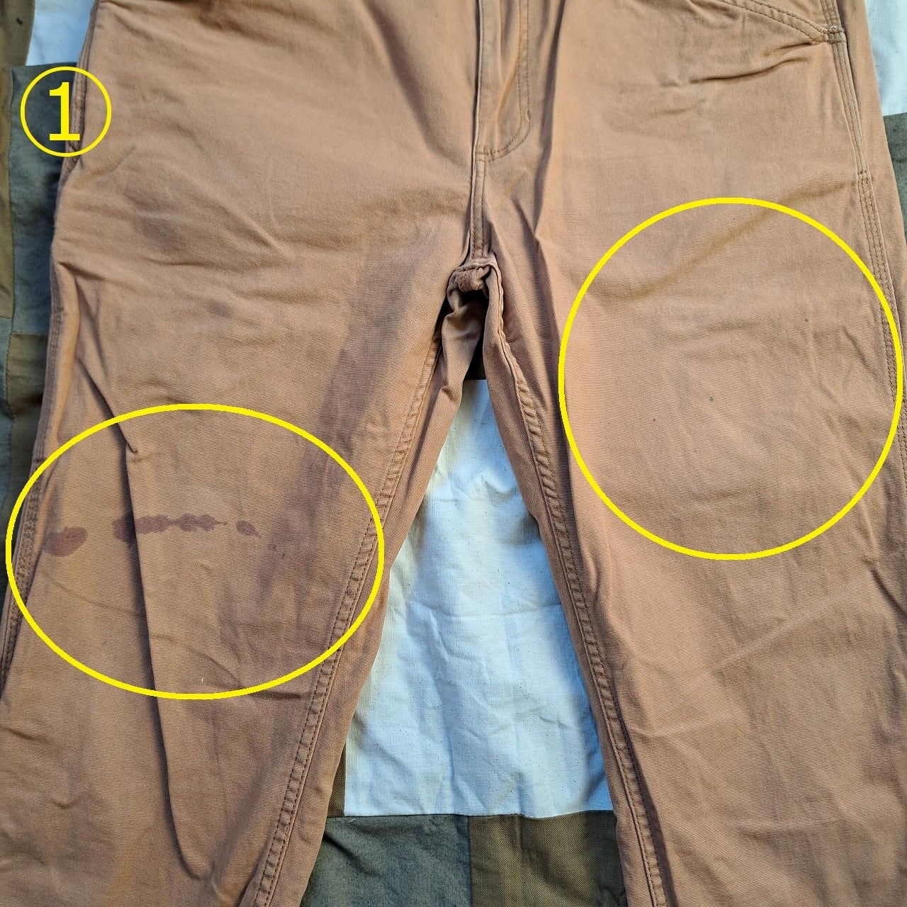 ●状態:①両腿汚れあり。その他、細かい汚れ随所あり。
