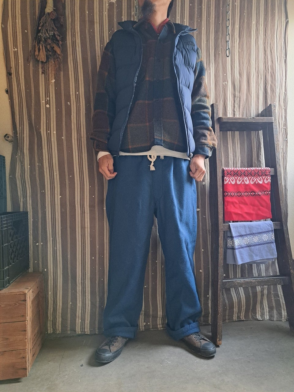 "NOS & one wash" 70's ギリシャ軍 ウールホスピタルパンツ ポケットカスタム used [512036]