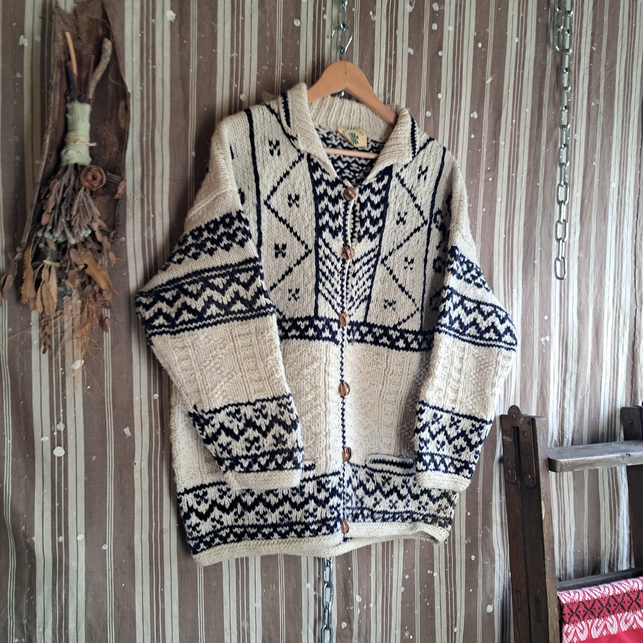 エクアドル製 ネイティブ柄カーディガン used [512047]