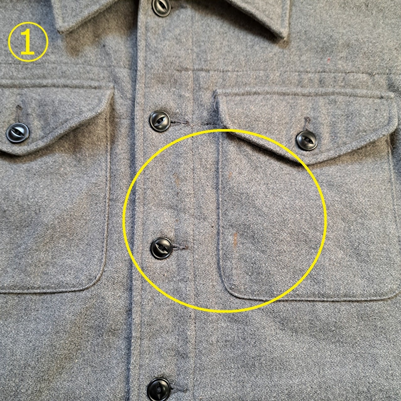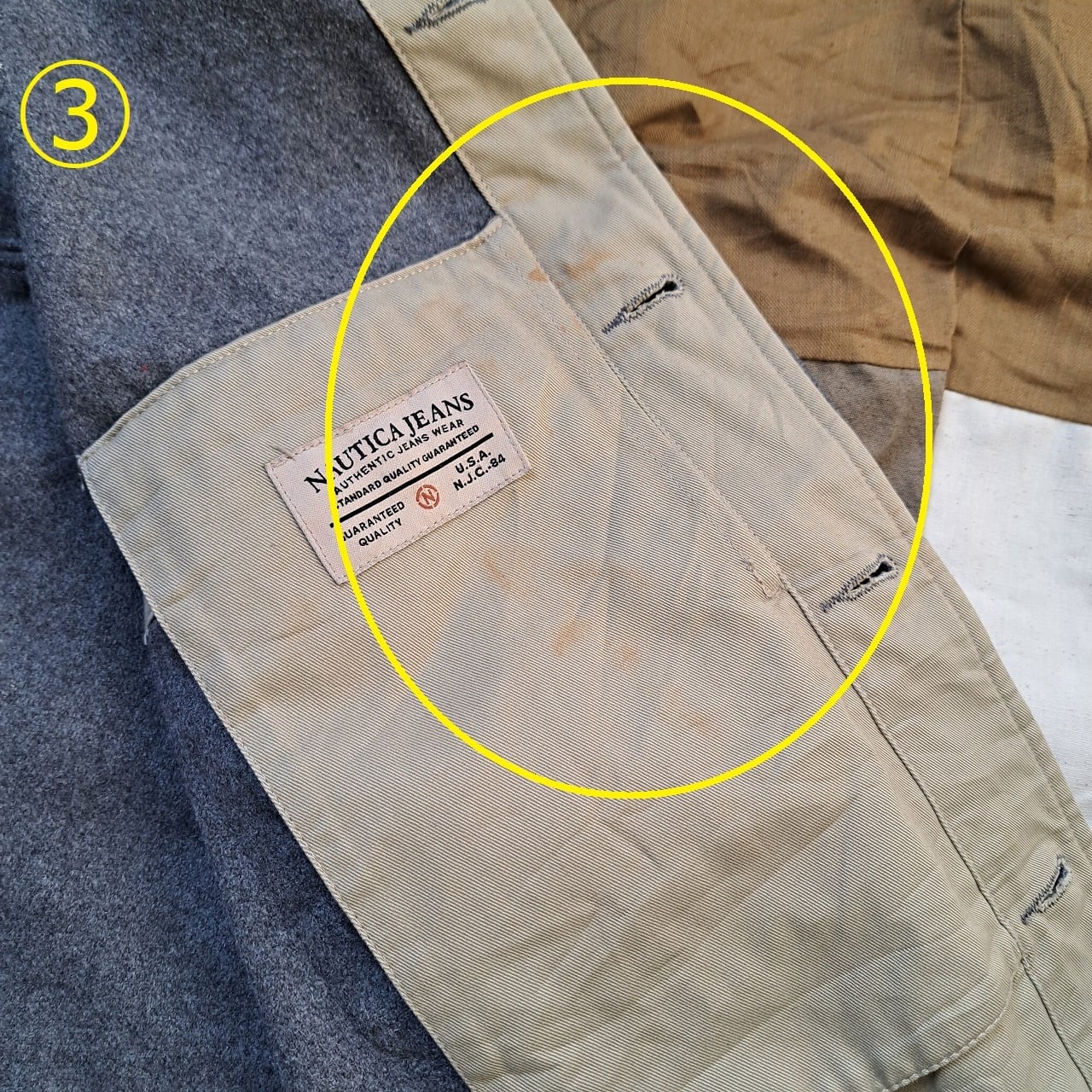 ●状態:①胸付近汚れあり。②左袖汚れあり。③左内側汚れあり。