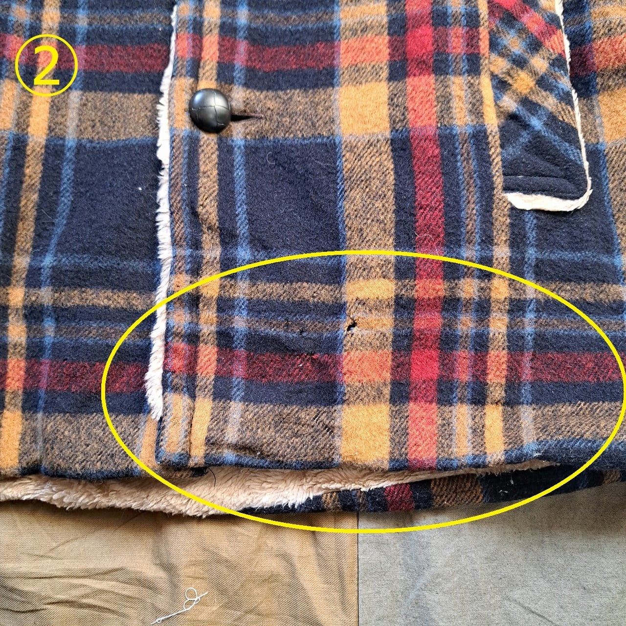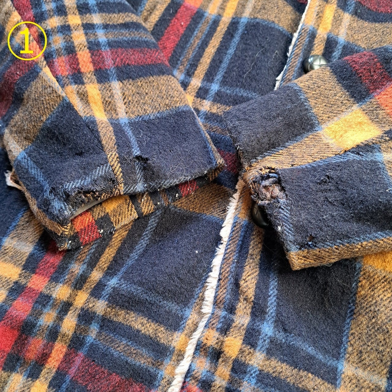 ●状態:①両袖口ダメージあり。②前裾ダメージあり。