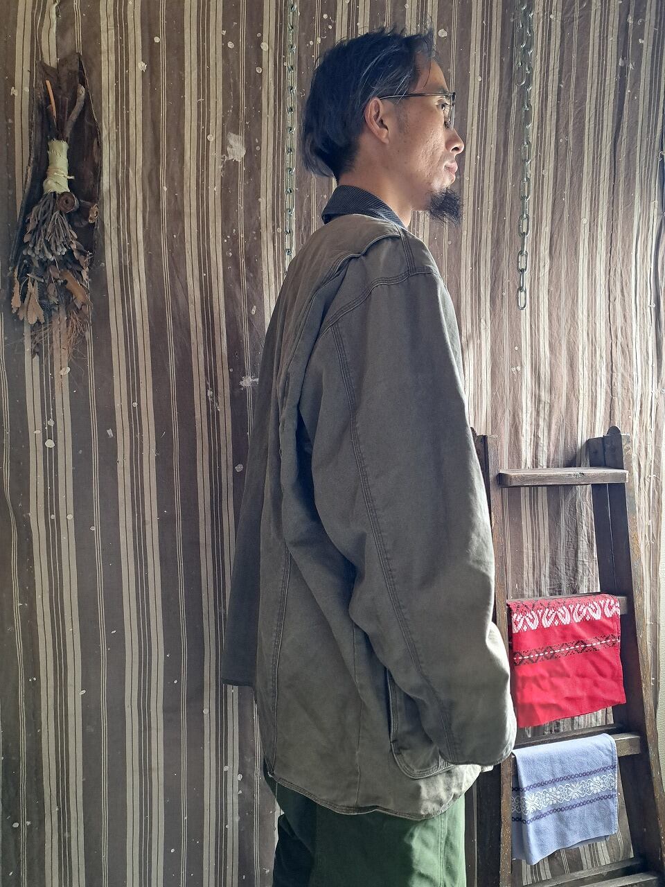 ●実寸(平置き):肩幅60.5cm 身幅73cm 着丈78.5cm 袖丈61cm
