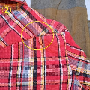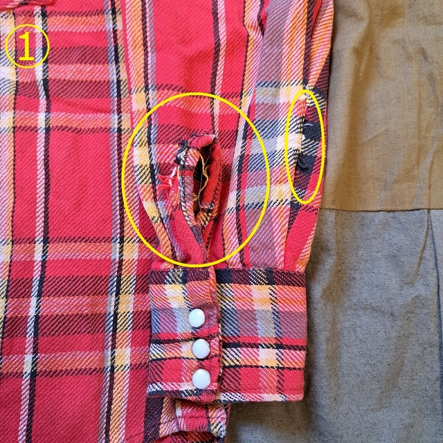 ●状態:①左袖ダメージあり。②右肩甲骨汚れあり。③右後ろ裾汚れあり。