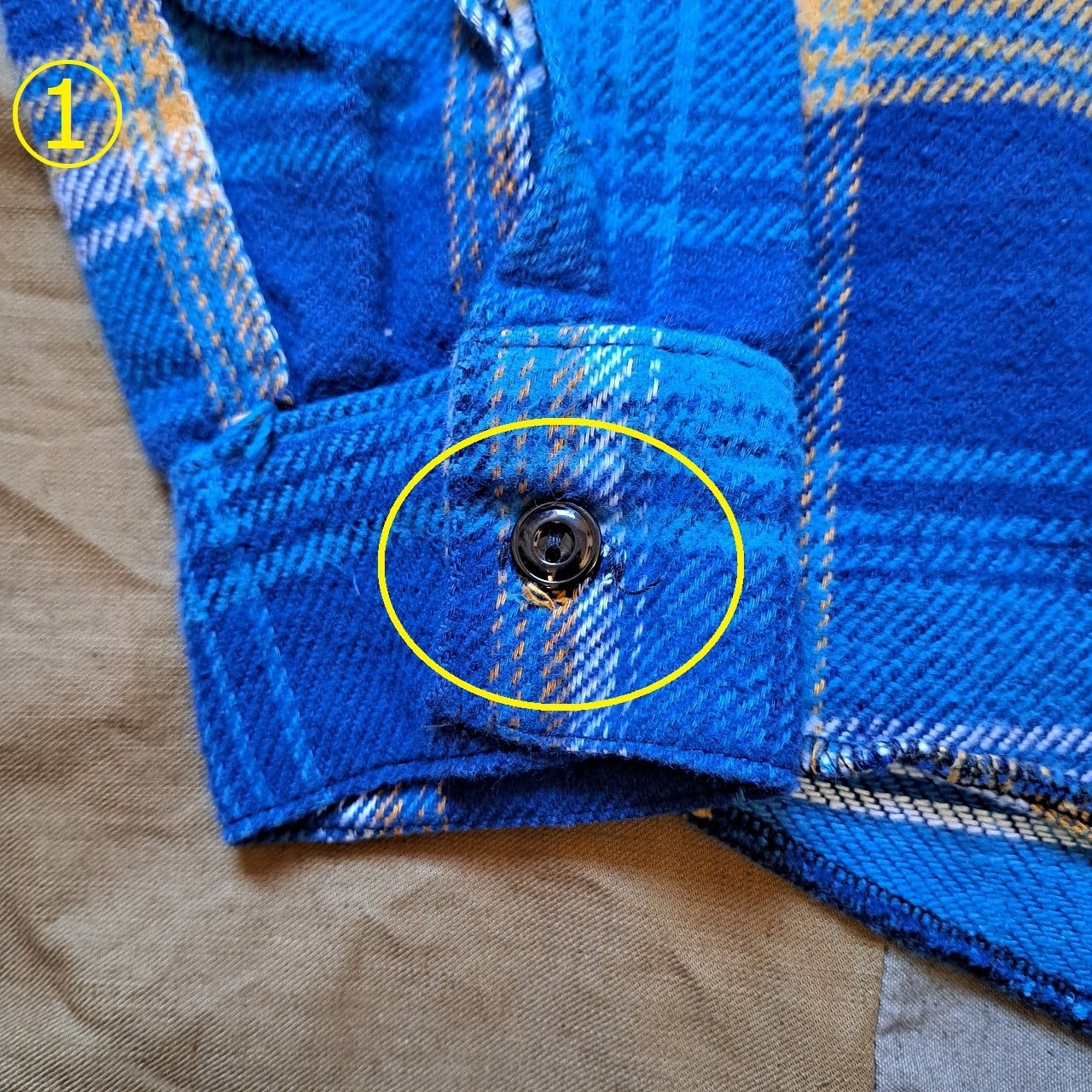 ●状態:①右袖口ボタンホールほつれあり。使用は問題ありません。
