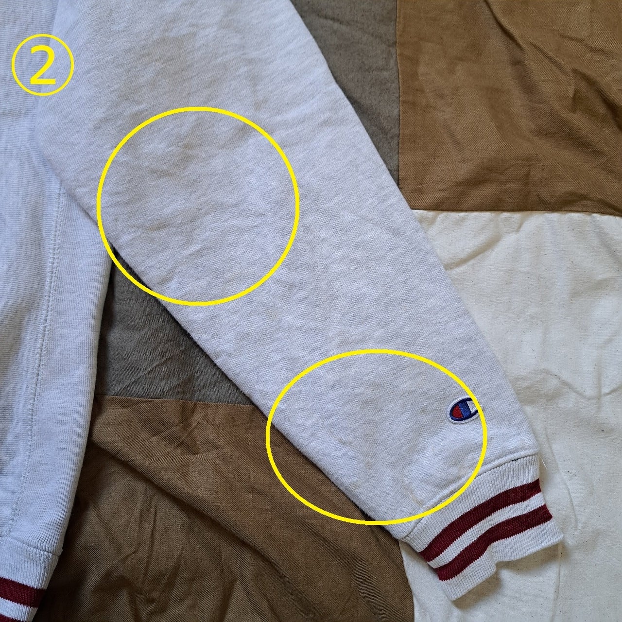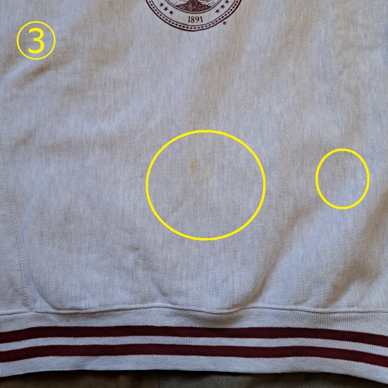 ●状態:①②左袖シミあり。③前身頃シミあり。