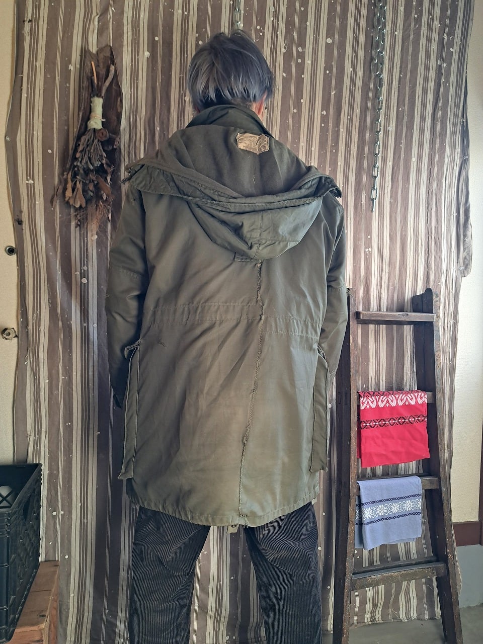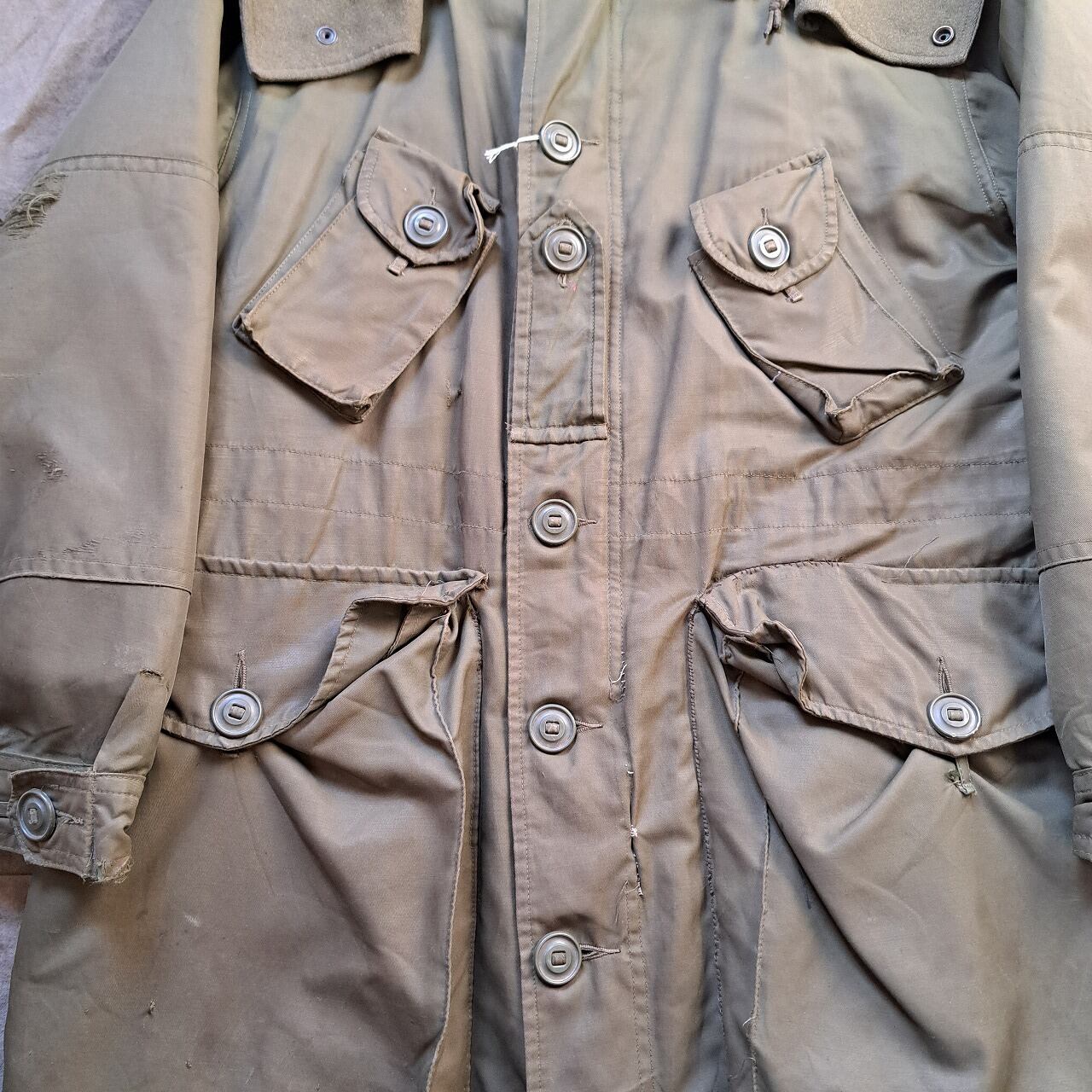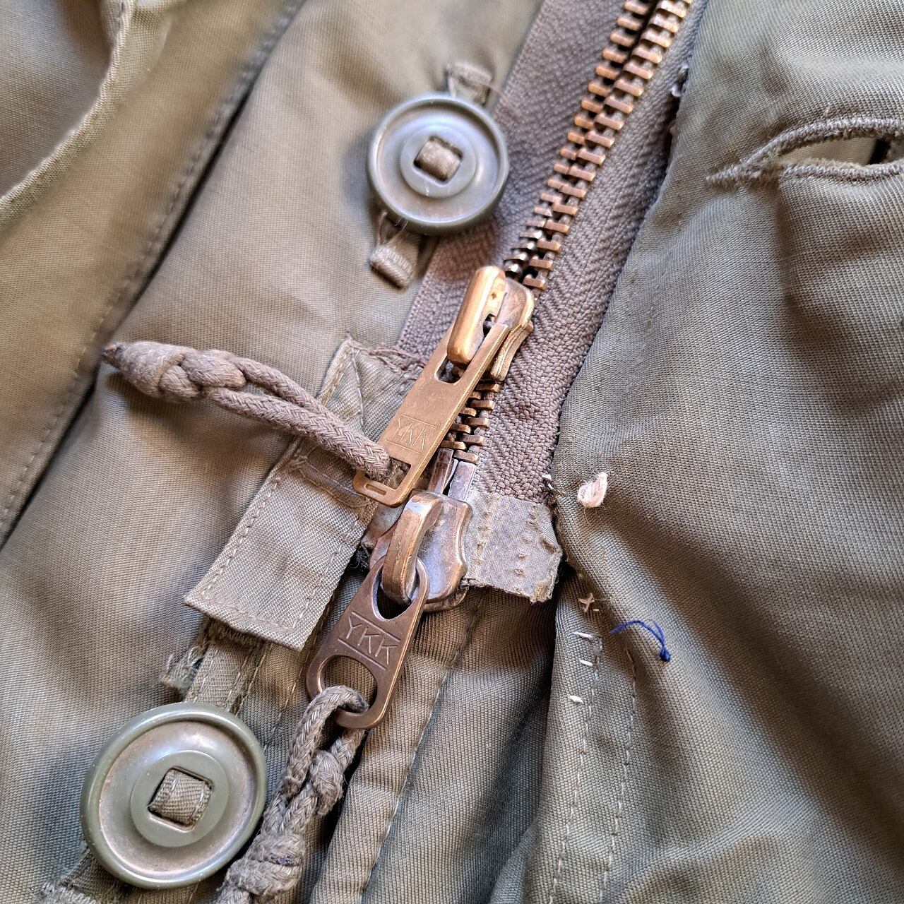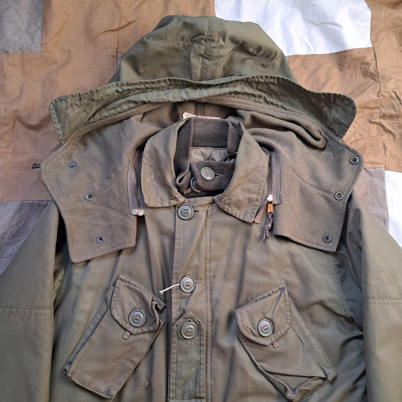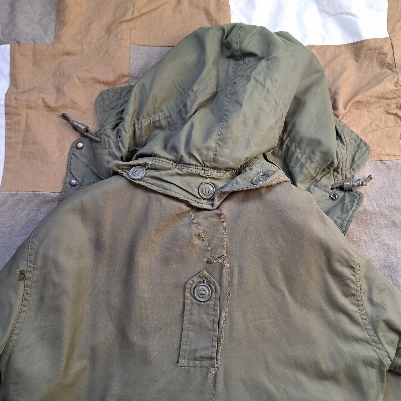●状態:多数のリペア、汚れなどあり。フードのサイズはボディと合っていますが、ジップの長さがかみ合っていません。元々の仕様の可能性あり。フロントジップは閉めるときに強く下げすぎるとかみ合いません。少し緩めに下げてください。着用自体は問題ありません。