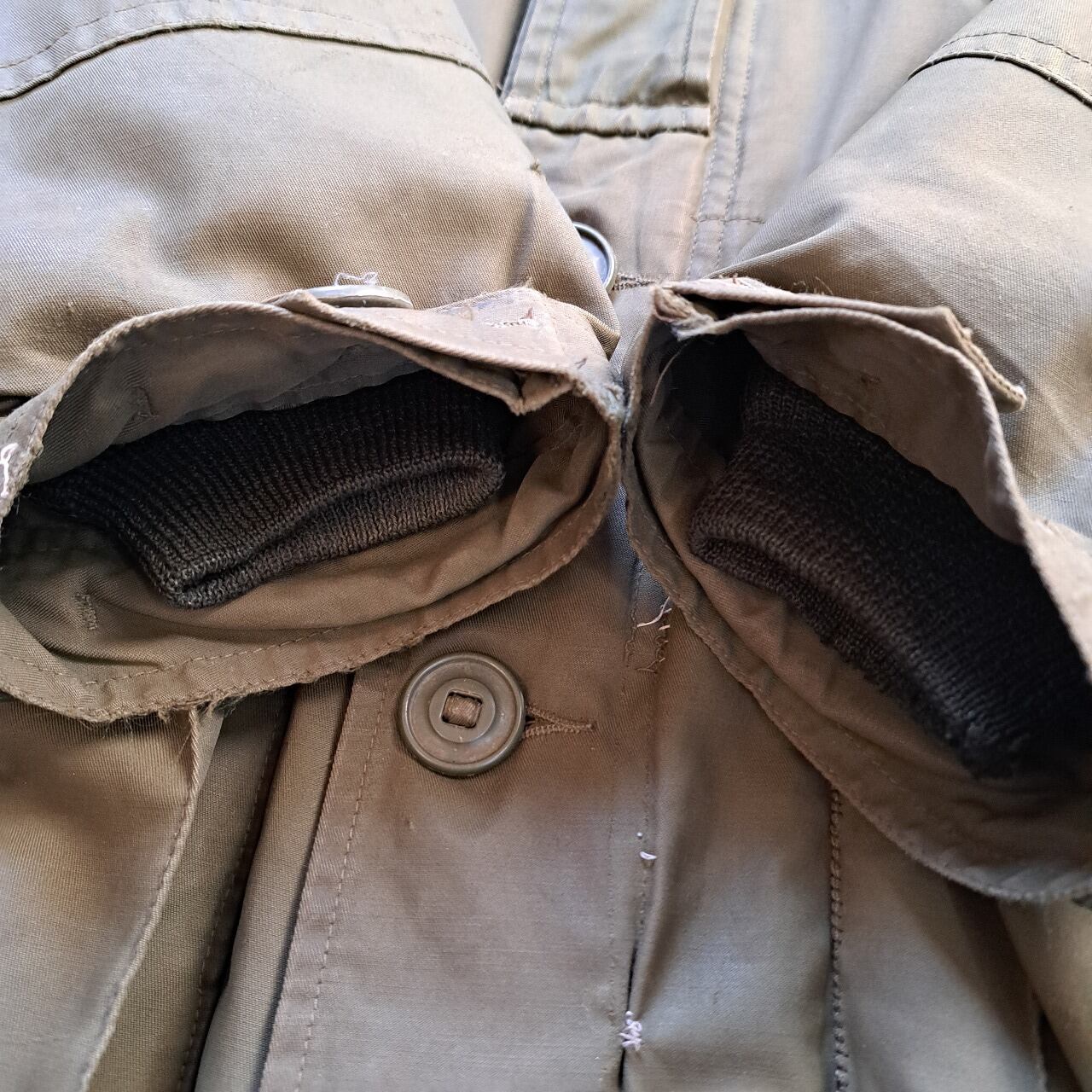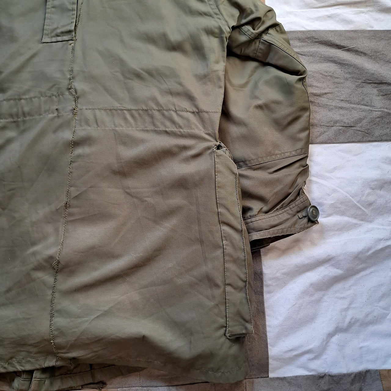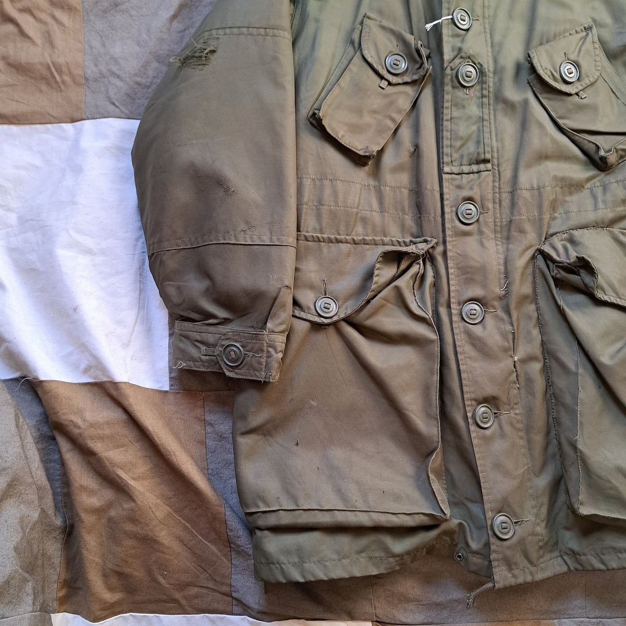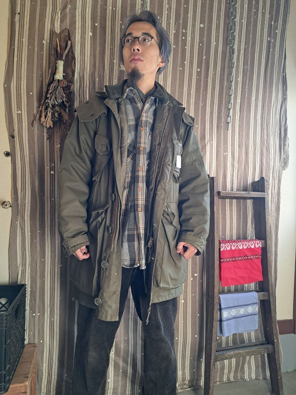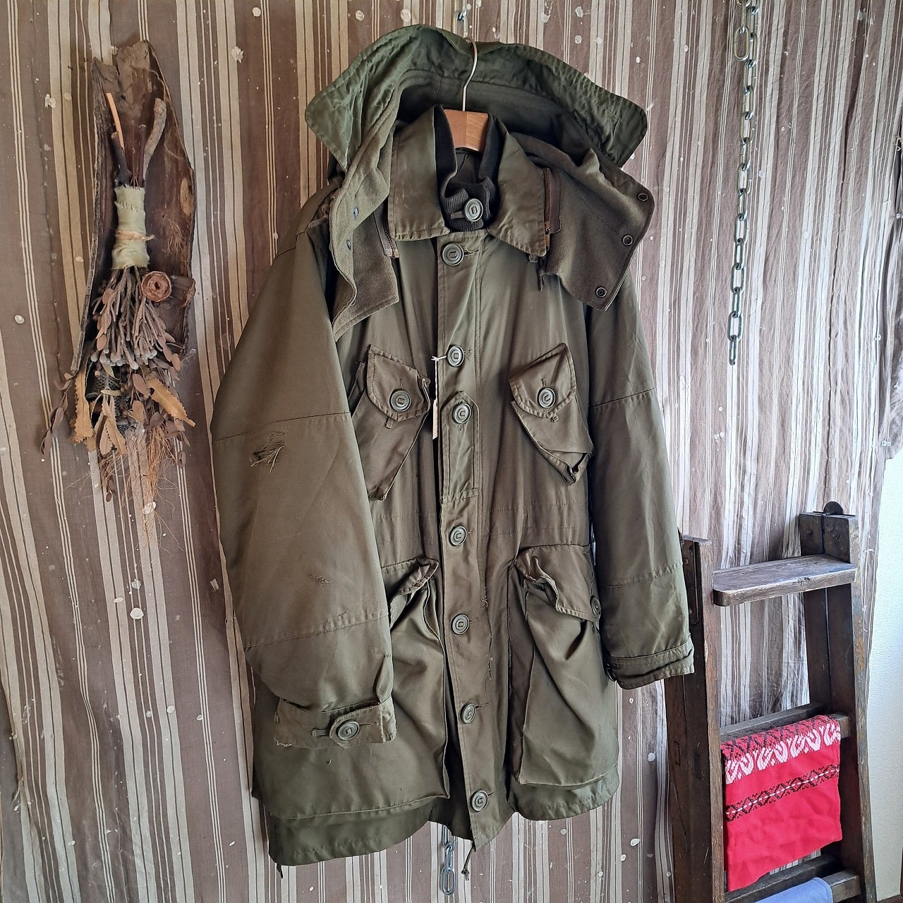 ●状態:多数のリペア、汚れなどあり。フードのサイズはボディと合っていますが、ジップの長さがかみ合っていません。元々の仕様の可能性あり。フロントジップは閉めるときに強く下げすぎるとかみ合いません。少し緩めに下げてください。着用自体は問題ありません。