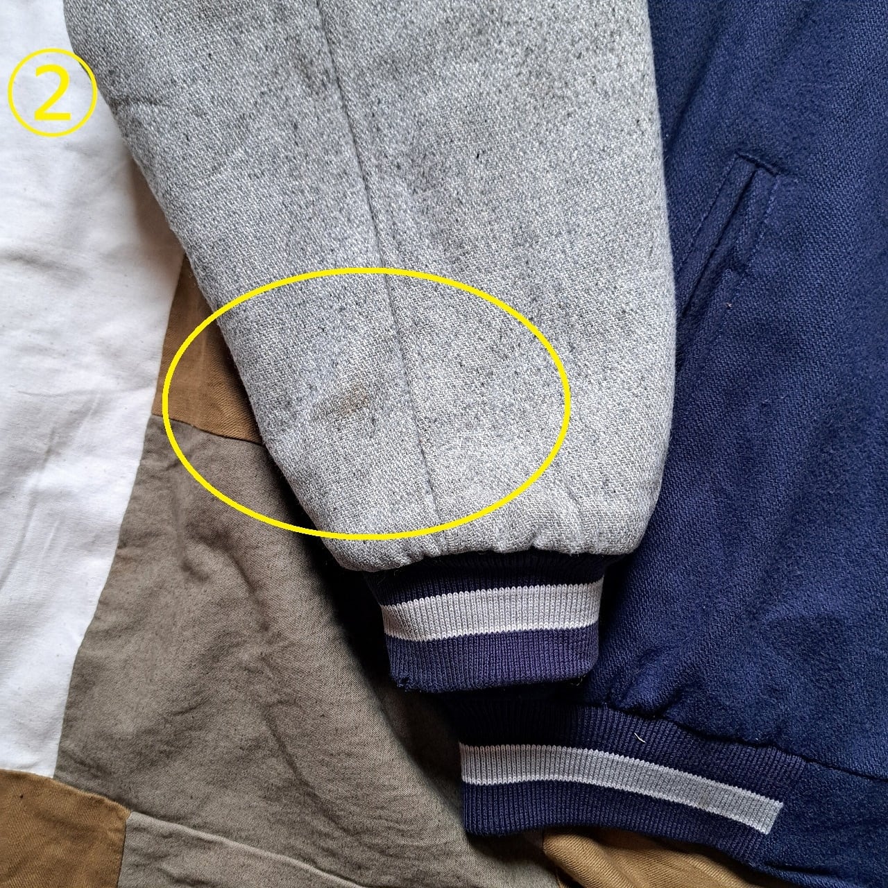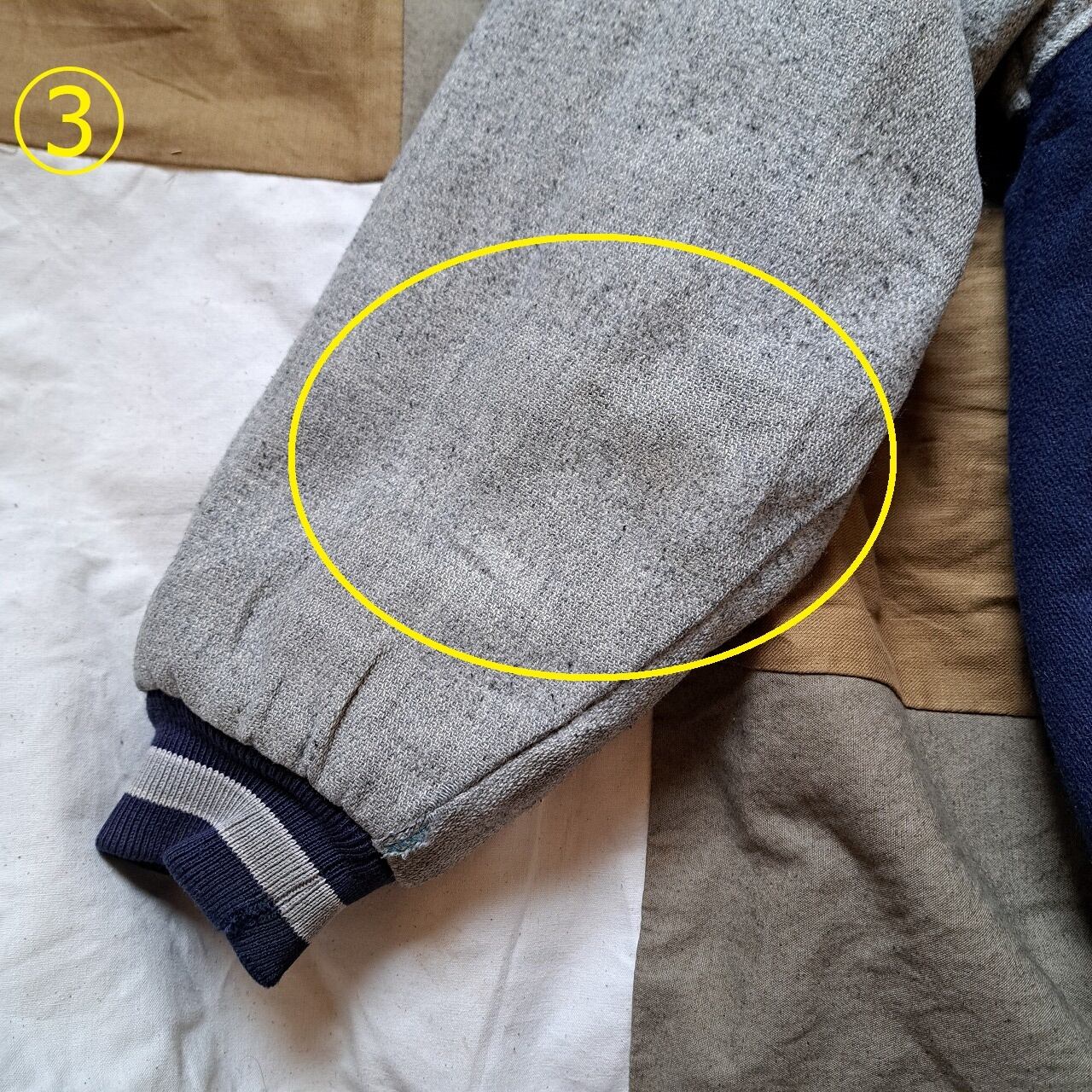 ●状態:両袖口擦れあり。①②③④各箇所ほか、汚れあり。