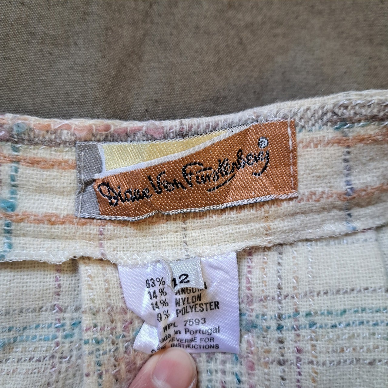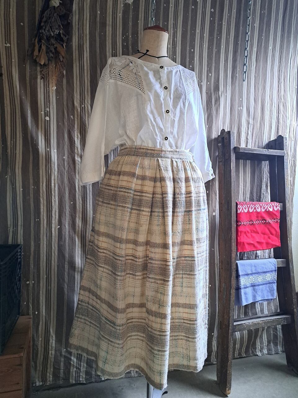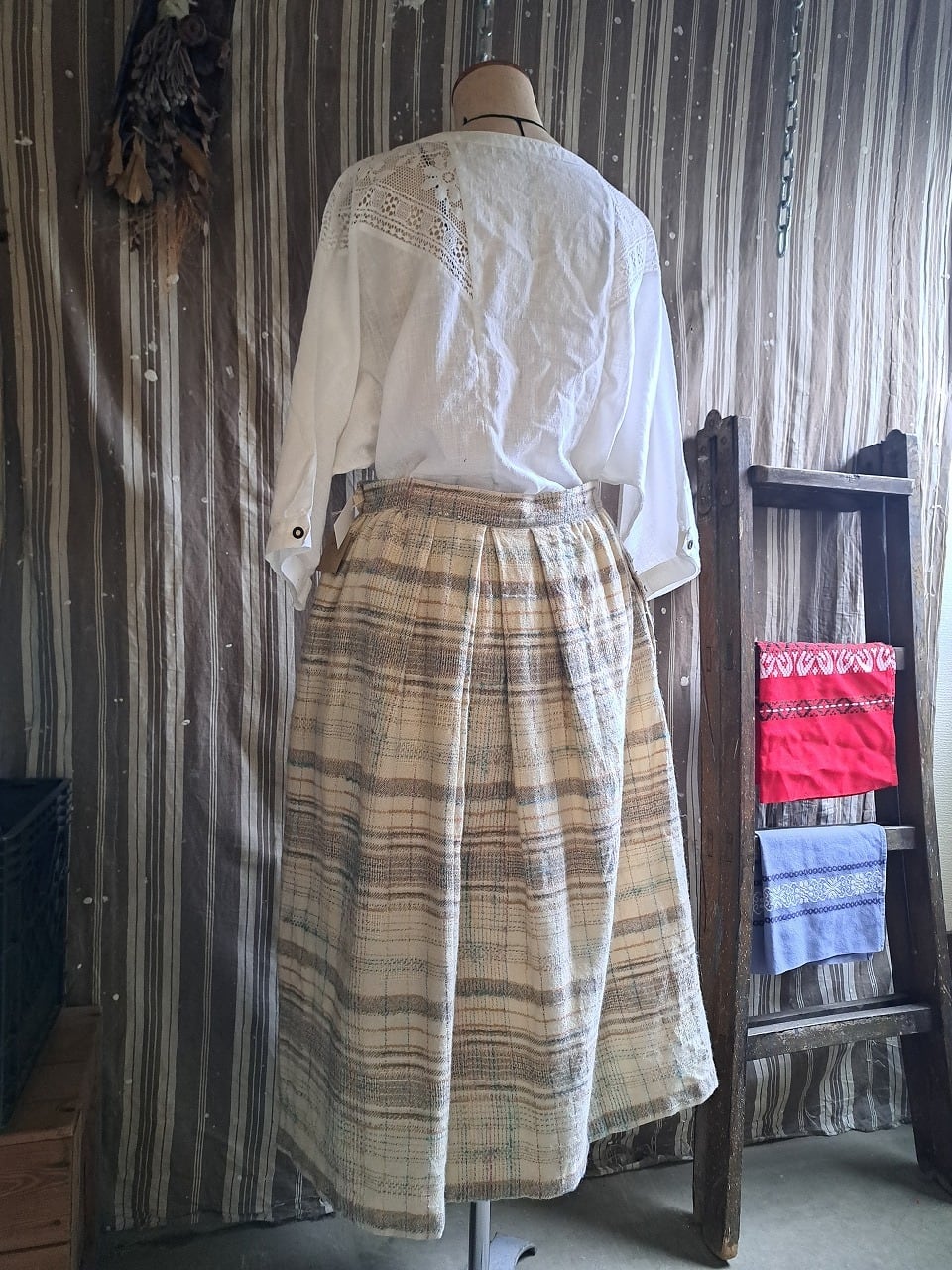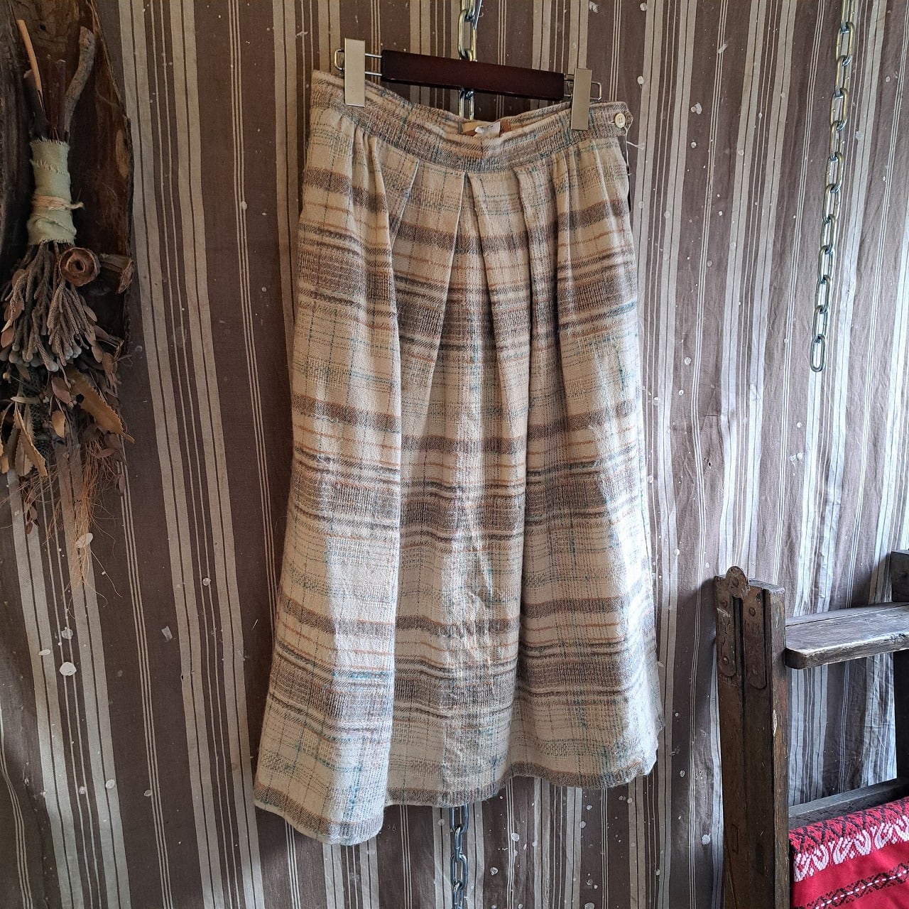 ポルトガル製 ウール混 チェックスカート used [501061]