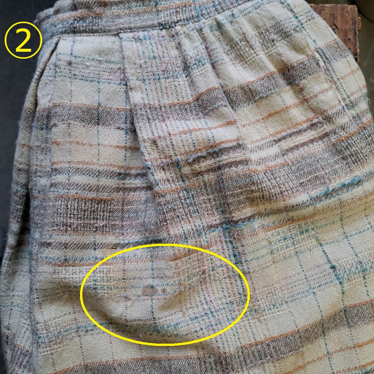 ●状態:①前身頃汚れあり。②前身頃汚れあり。