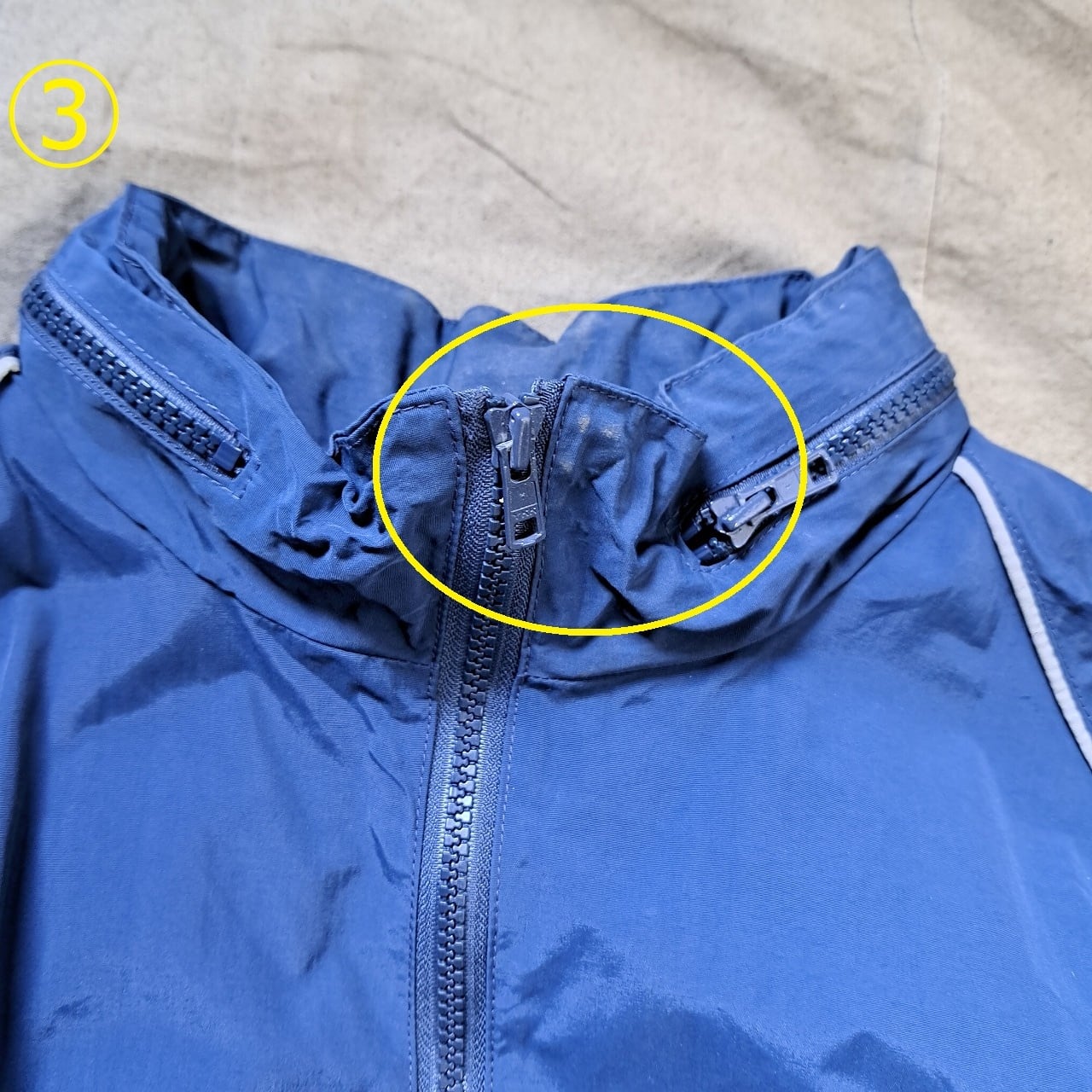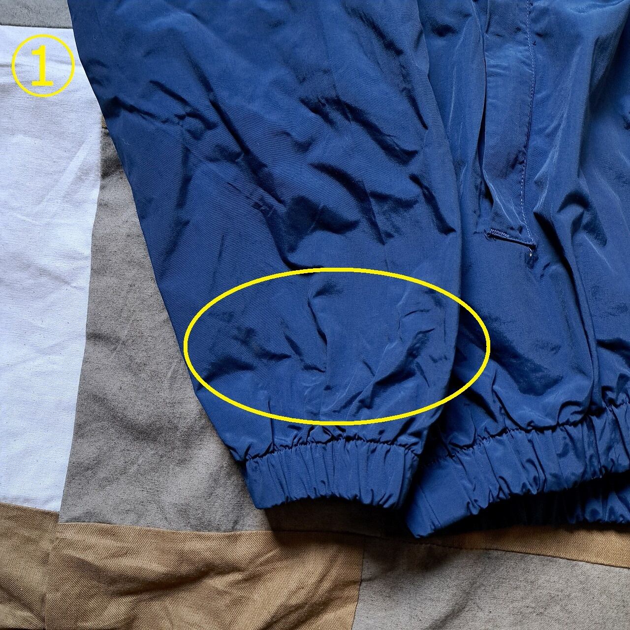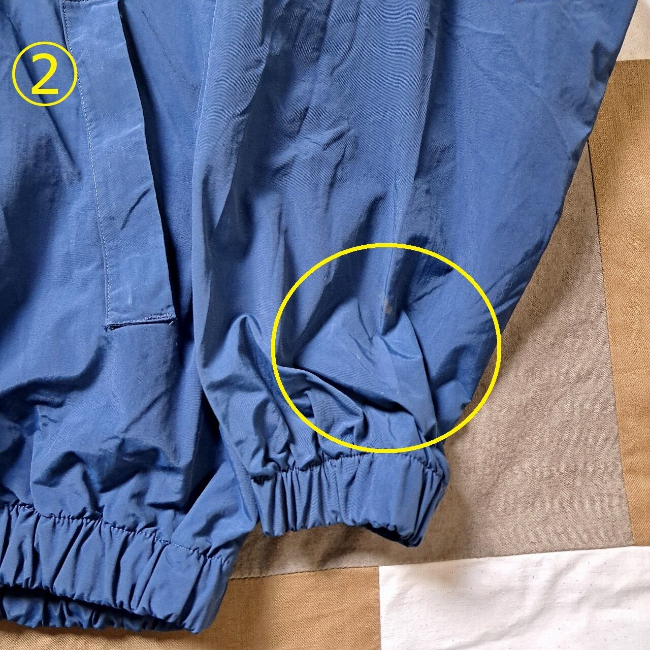 ●状態:①右袖汚れあり。②左袖汚れあり。③首元汚れあり。