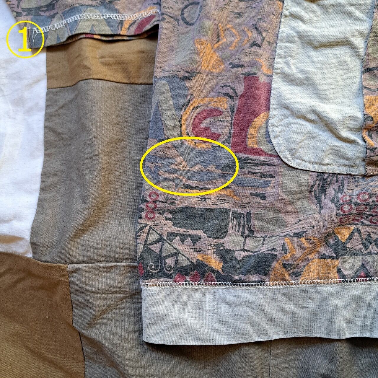 ●状態:①右前裾付近ピンホールあり。