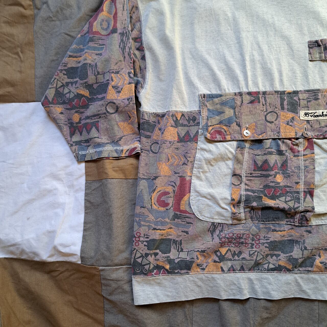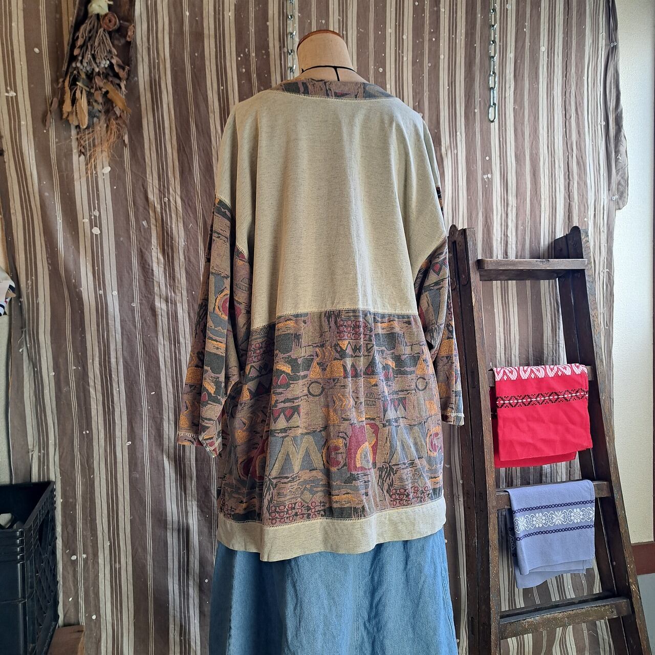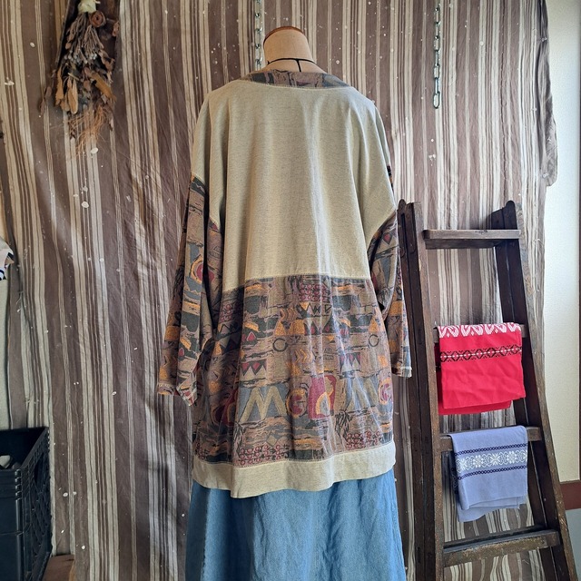 ●実寸(平置き):肩幅60cm 身幅58.5cm 着丈74.5cm 袖丈43.5cm