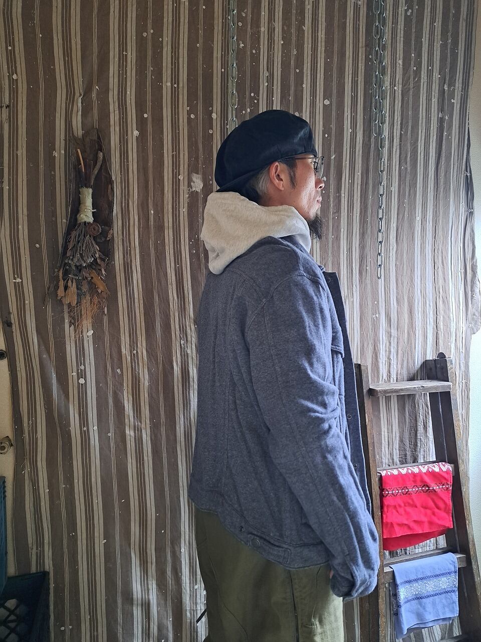 ●実寸(平置き):肩幅53cm 身幅59.5cm 着丈62cm 袖丈67.5cm