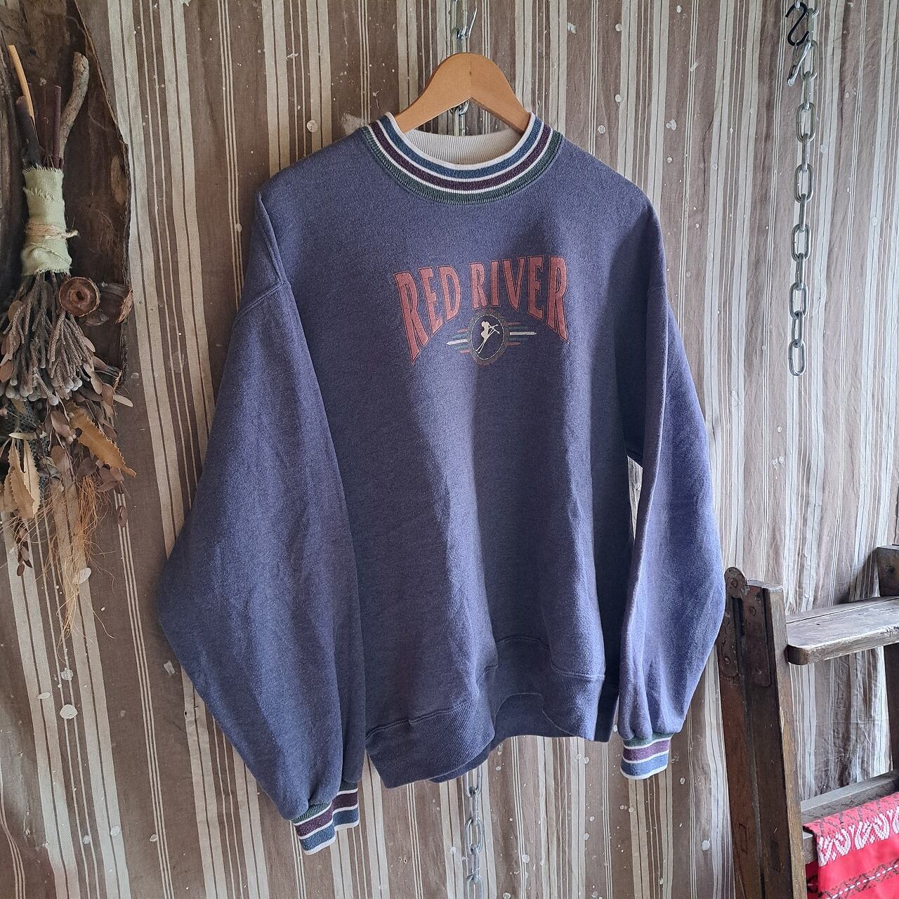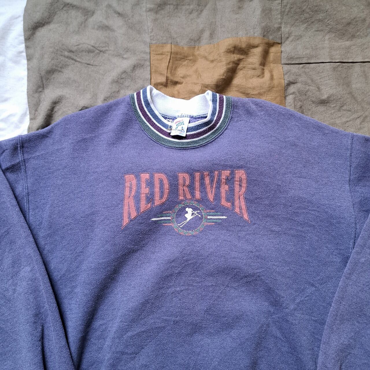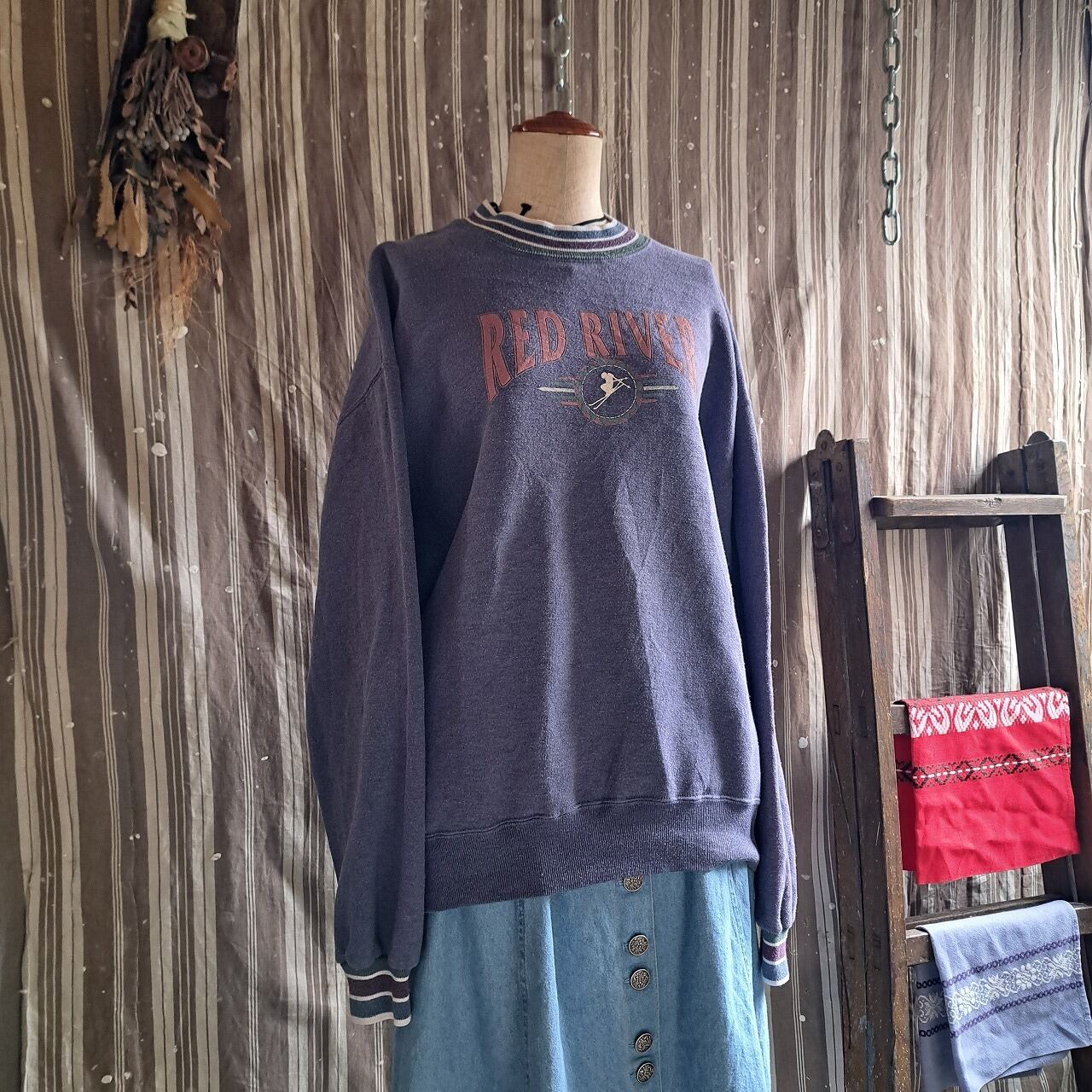 "RED RIVER" アメリカ製 リブツートーン プリントスウェット used [503003]
