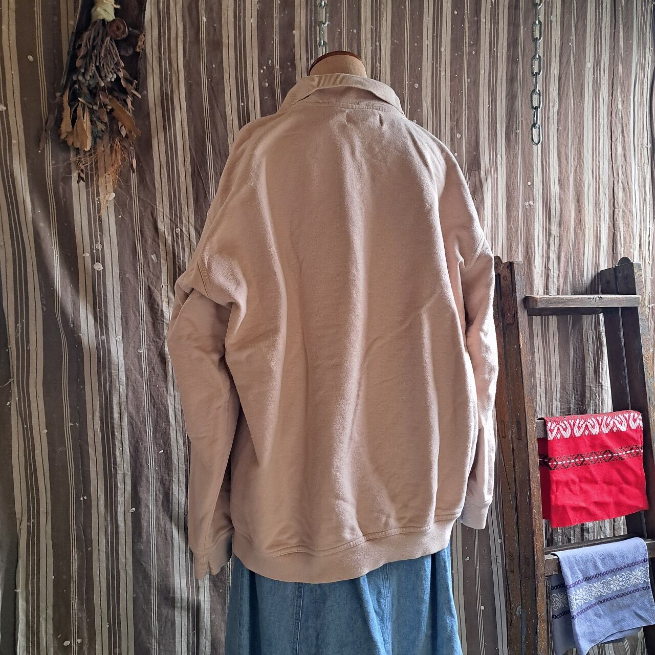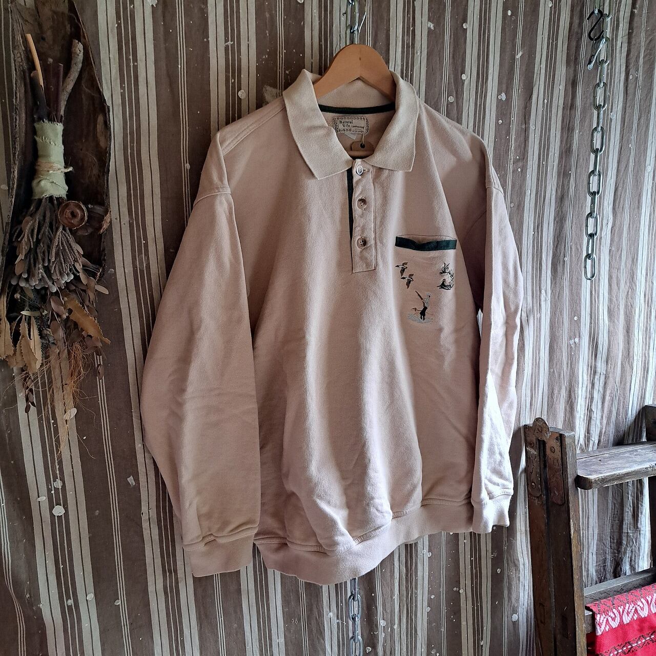 ドイツ製? 刺繍入りハーフボタンスウェット used [503005]