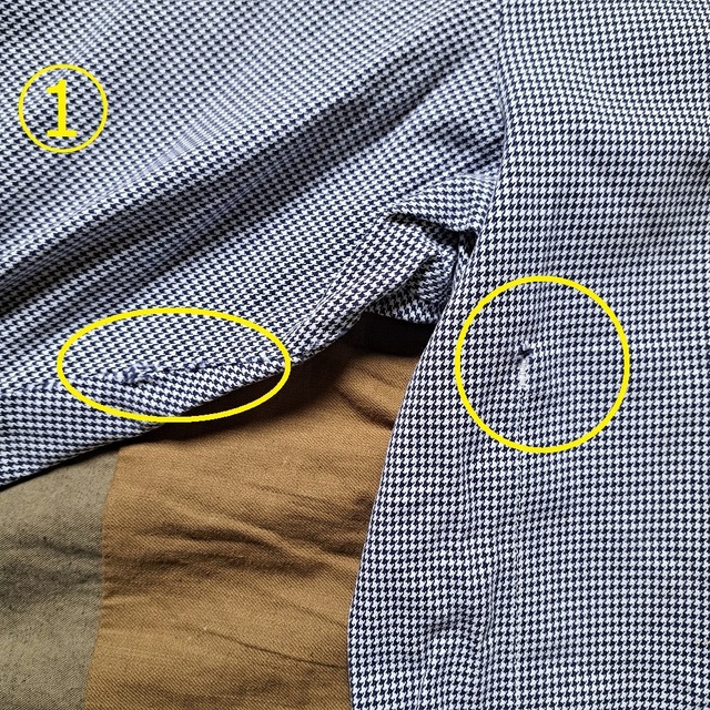 ●状態:①右袖内側擦れあり。内ポケット上部のステッチ付近擦れあり。