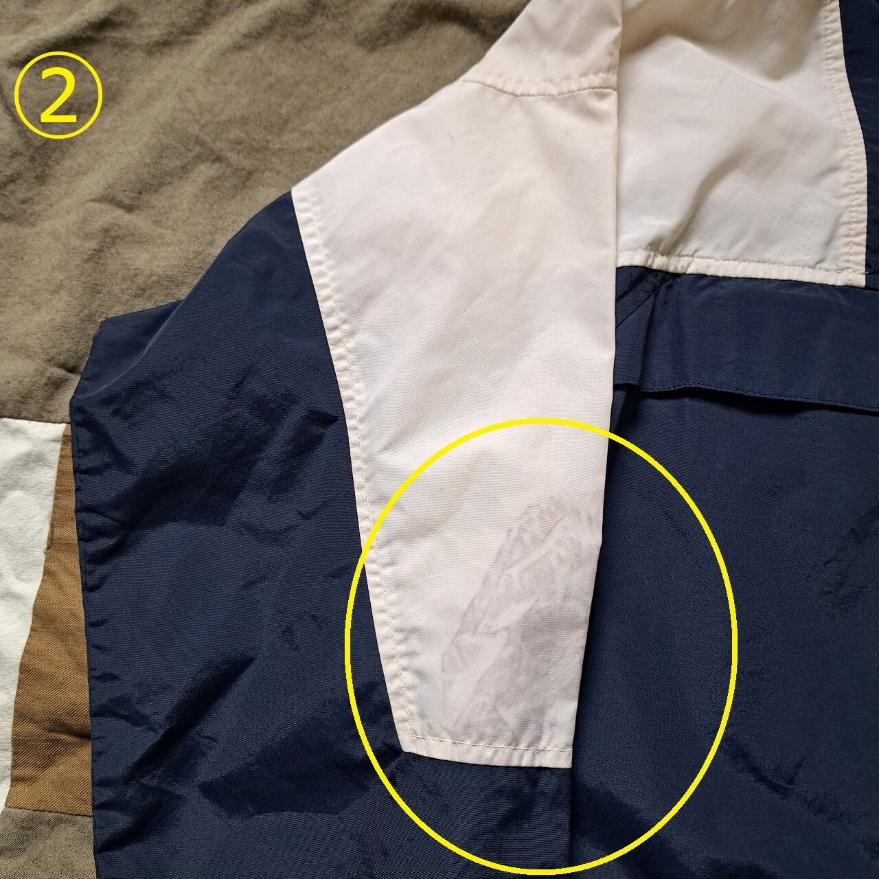 ●状態:①左袖汚れあり。②右袖汚れあり。