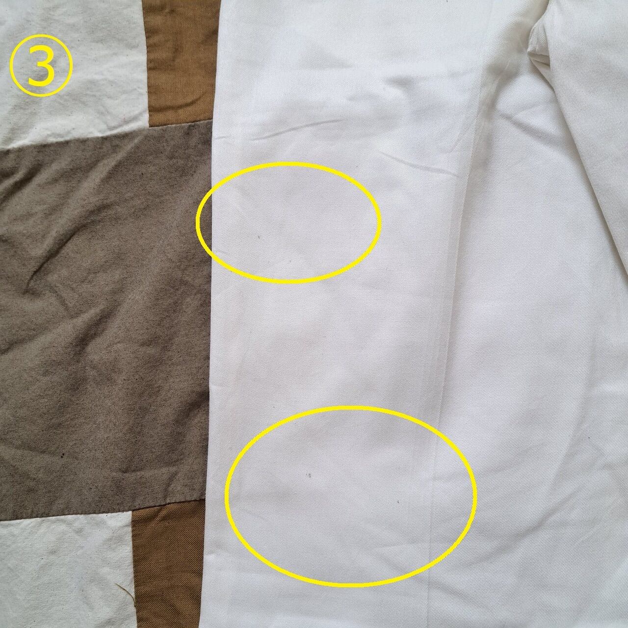 ●状態:①左前身頃汚れあり。②左前身頃汚れあり。③左後ろ身頃汚れあり。