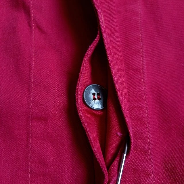 ●状態:①左肩周り小穴あり。②両袖、両ポケット、後ろ裾汚れあり。