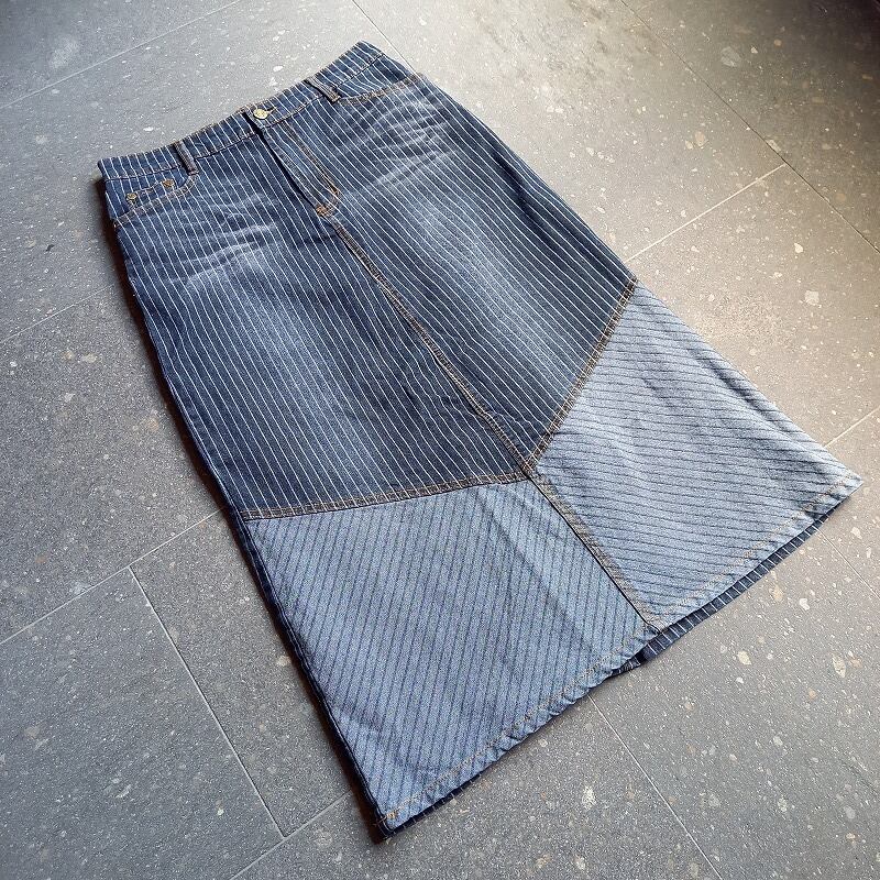 ヨーロッパ製 ストライプデニムスカート used [108016]