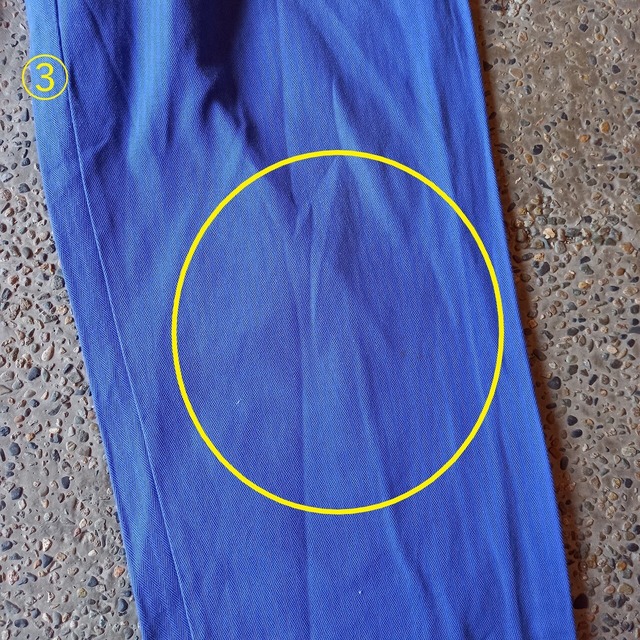 ●状態:①サスペンダーダメージあり。②右ひざ汚れあり。③左ひざ汚れあり。
