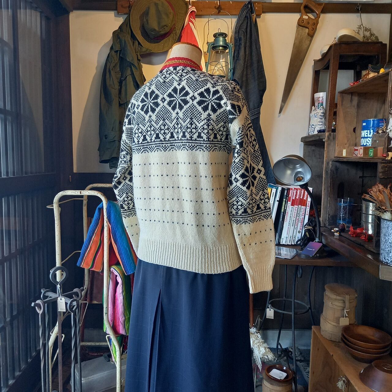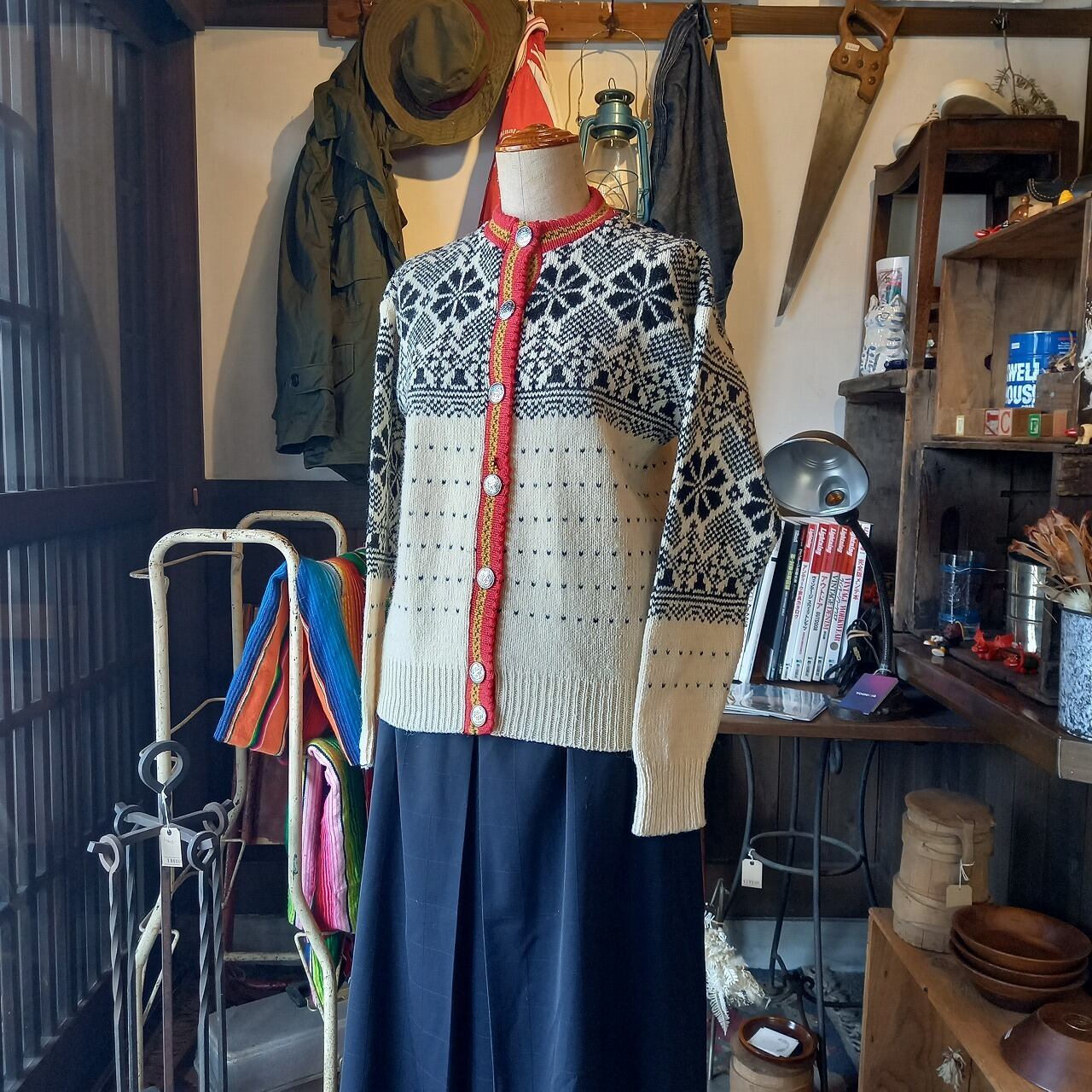 アメリカ製 アルミボタン ノルディック柄カーディガン used [201103]