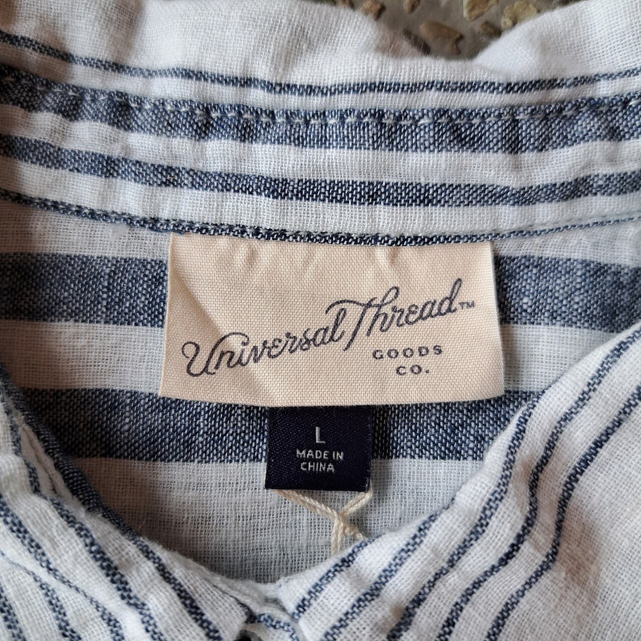 リネン混 プルオーバー ストライプブラウス used [206056]