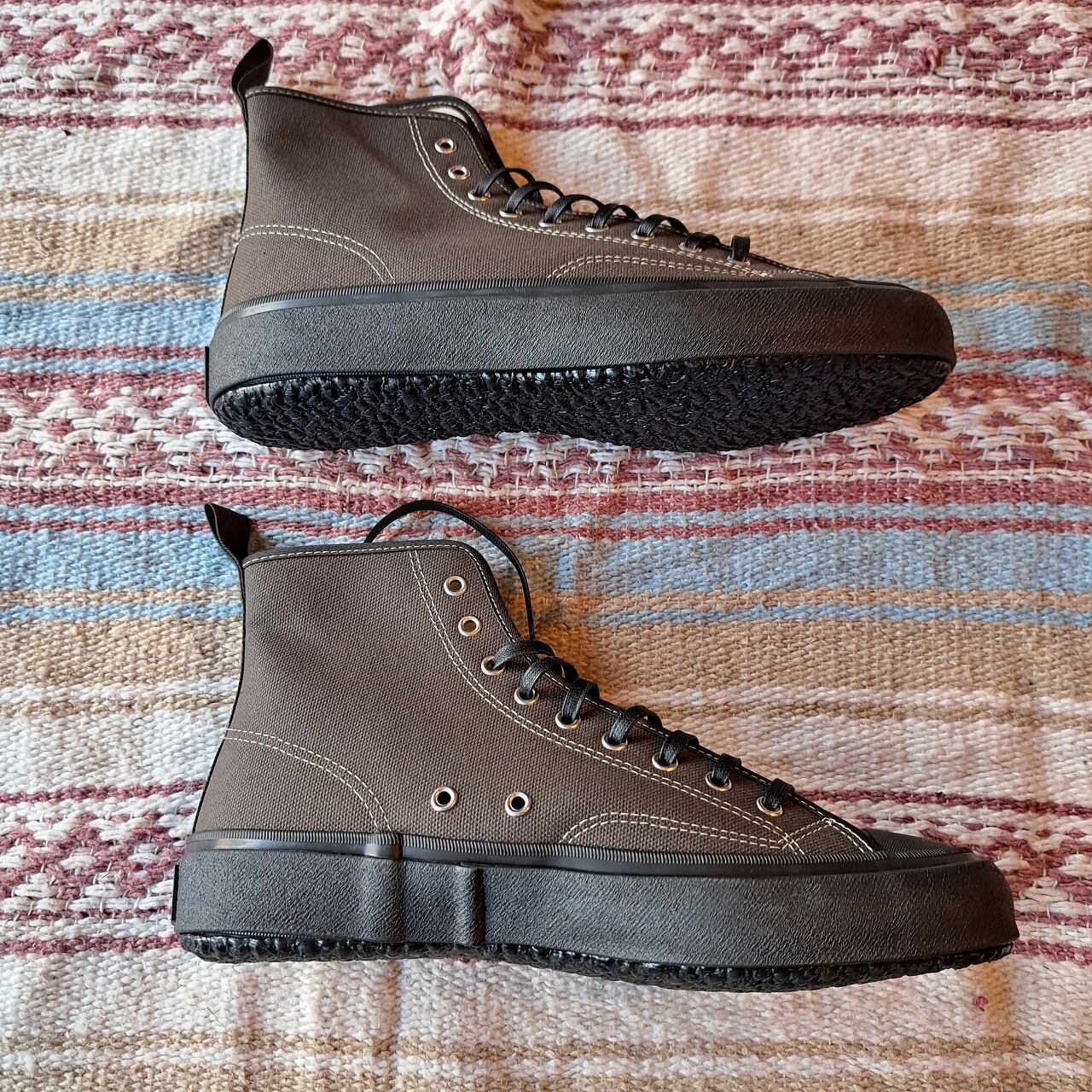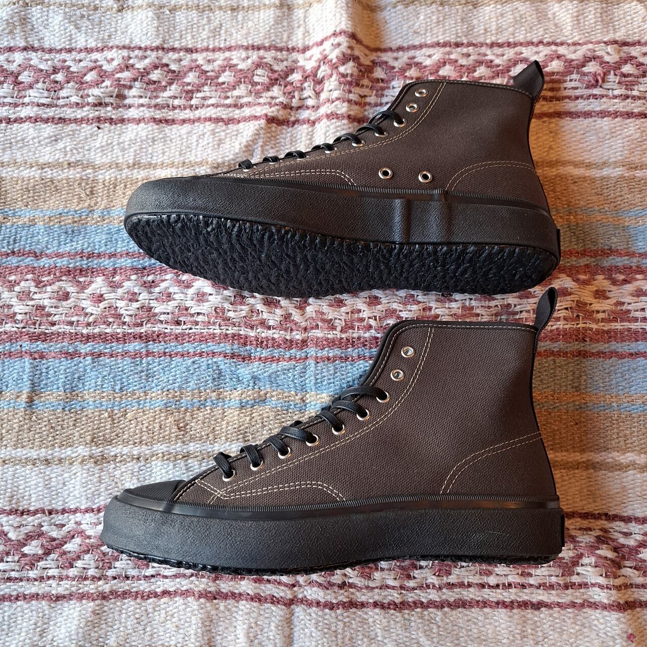 踵のくびれや傾斜のかかった履口などヴィンテージの要素を取り入れることでラギットなイメージに仕上げたハイカットタイプ。