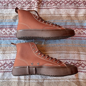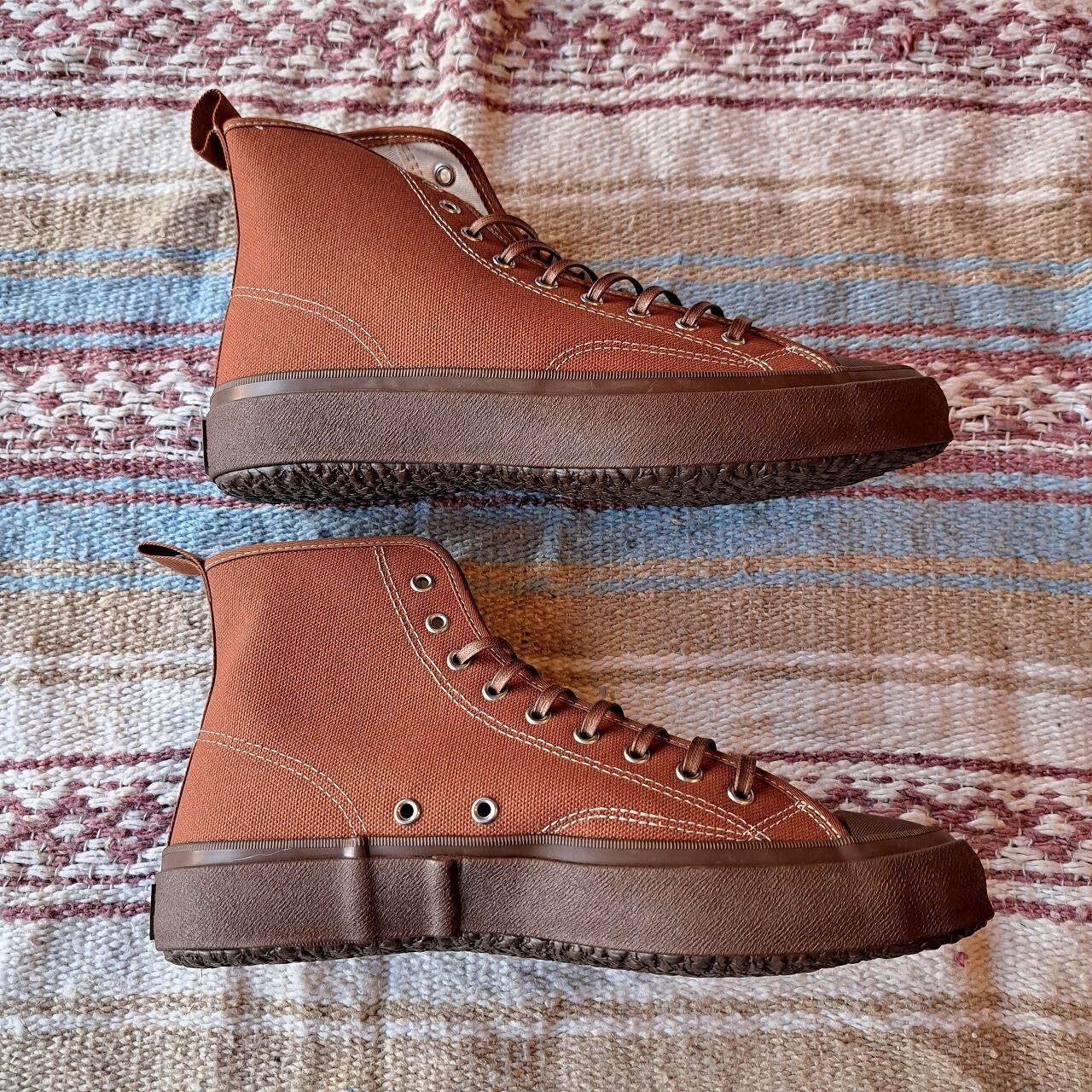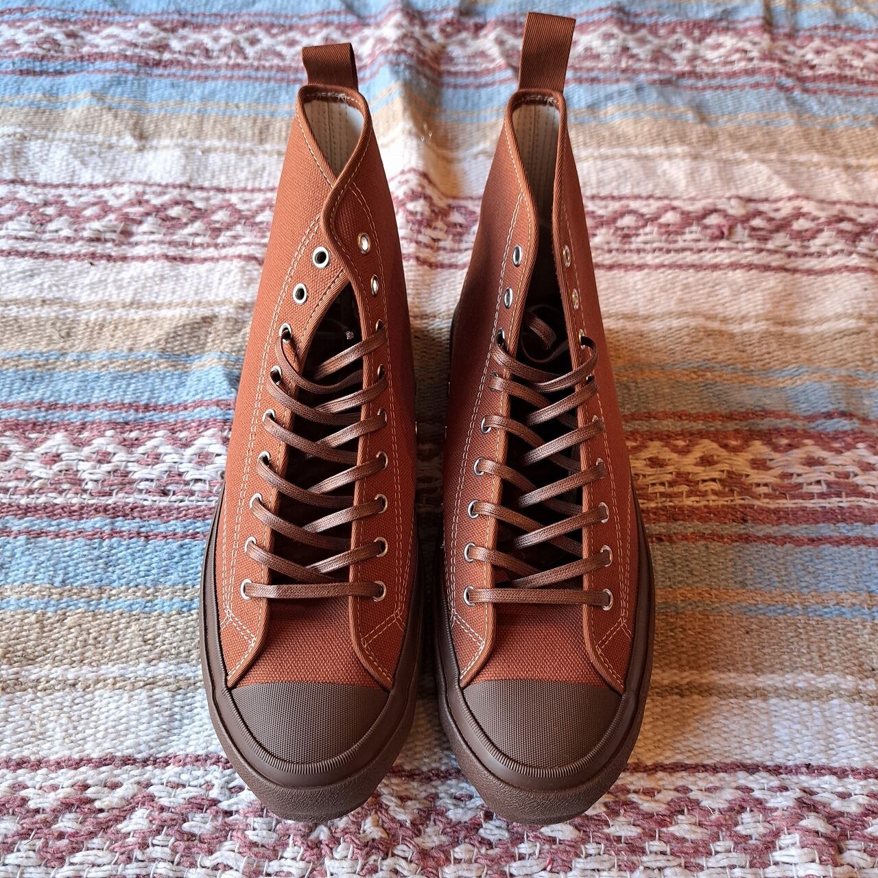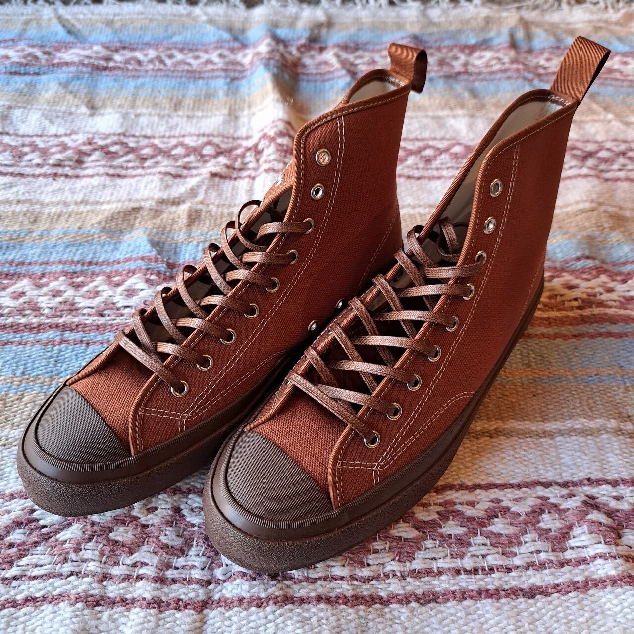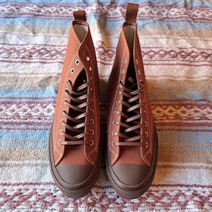 踵のくびれや傾斜のかかった履口などヴィンテージの要素を取り入れることでラギットなイメージに仕上げたハイカットタイプ。