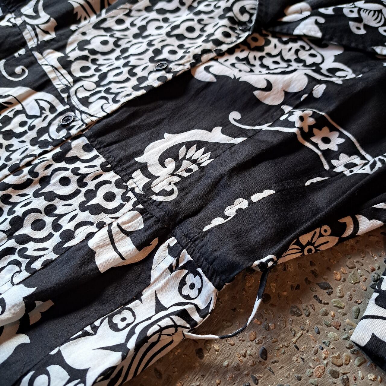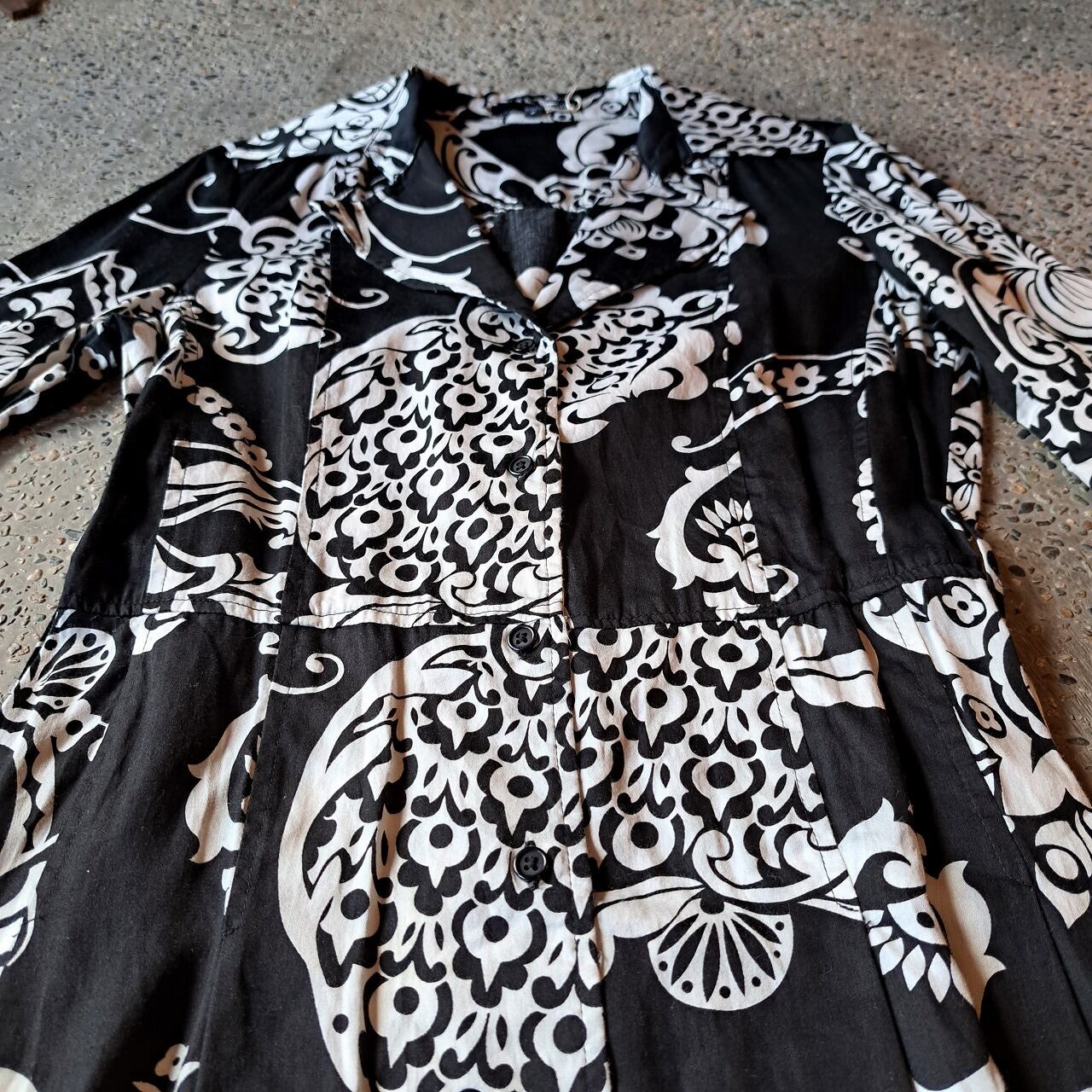 ●実寸(平置き):肩幅39cm 身幅46cm 着丈109cm 袖丈31cm ウエスト36.5×2 cm