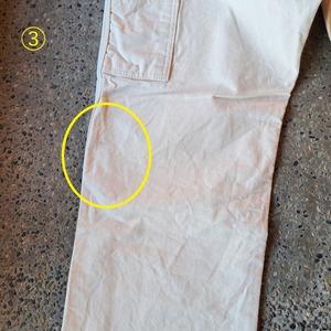 ●状態:①前身頃シミあり。②右後ろ膝裏汚れあり。③左後ろ膝裏汚れあり。