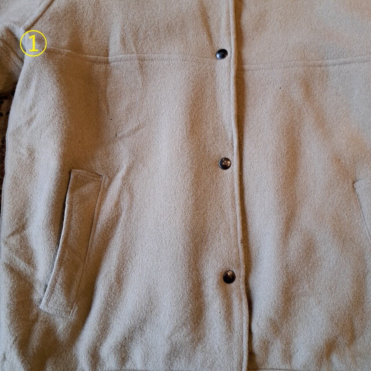 ●状態:①前身頃細かい虫食いあり。裏地あるため透け感なし。②後ろ身頃細かい虫食いあり。裏地あるため透け感なし。③前立て内側汚れあり。④裏地裾付近汚れあり。