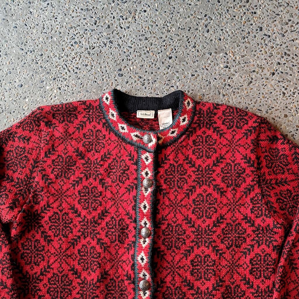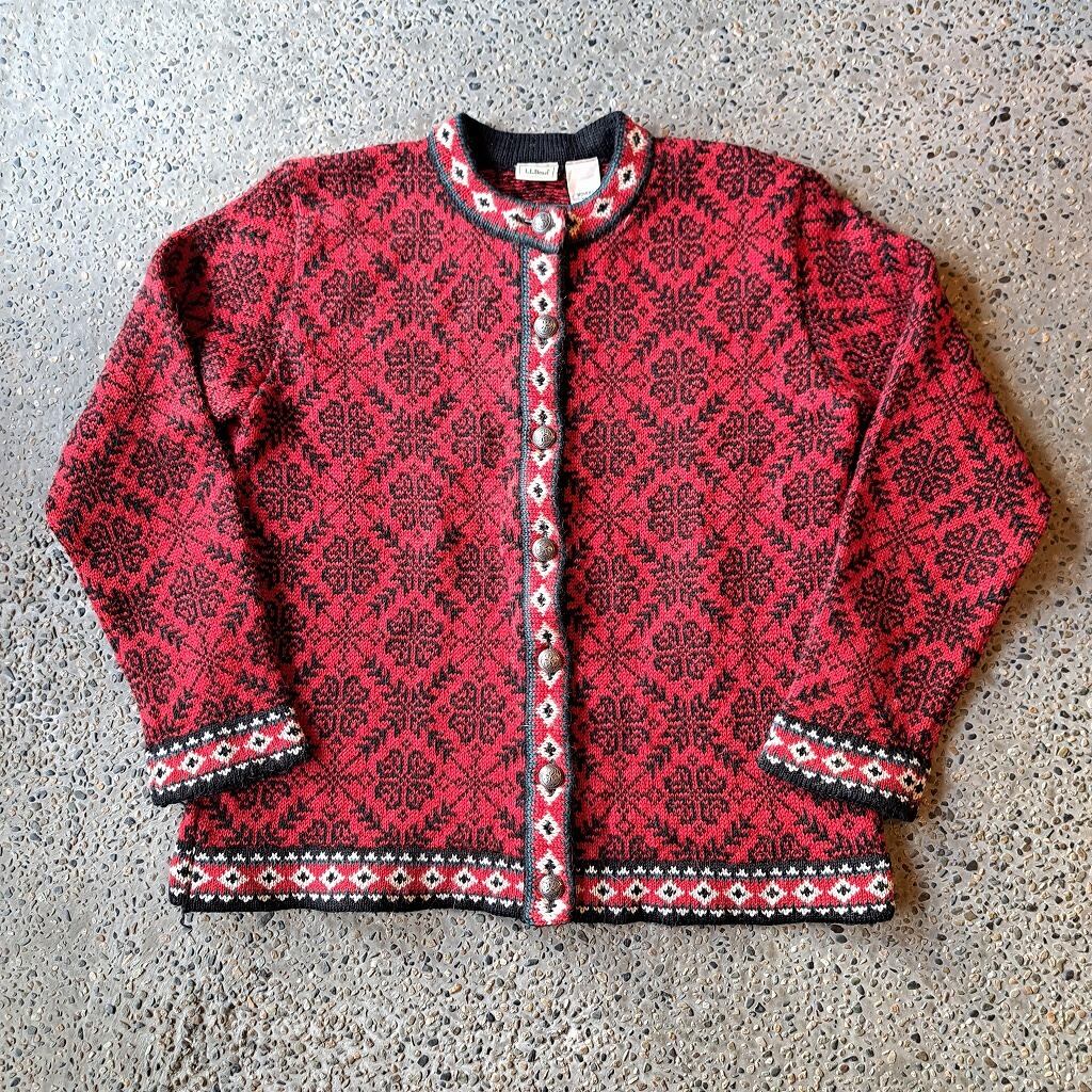 L.L.Bean コンチョボタン ノルディック柄カーディガン used [301106]