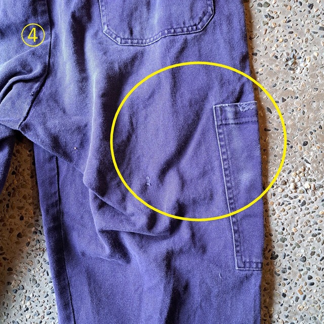●状態:①右前足身頃ダメージあり。②左脚前裾ダメージあり。③左尻部分リペアあり。④右後ろ腿付近擦れあり。