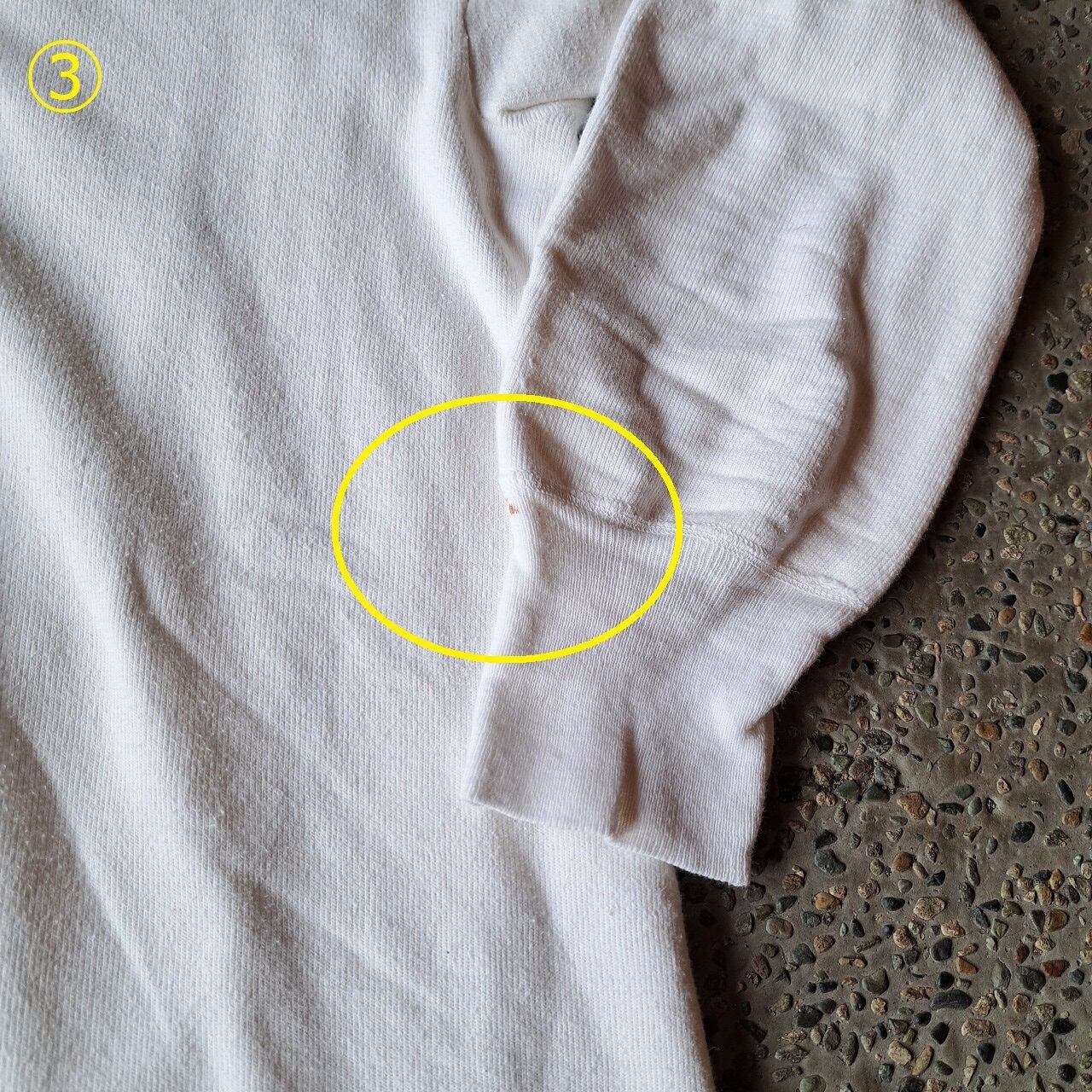 ●状態:①右胸シミあり。②前裾付近汚れあり。③左袖シミあり。