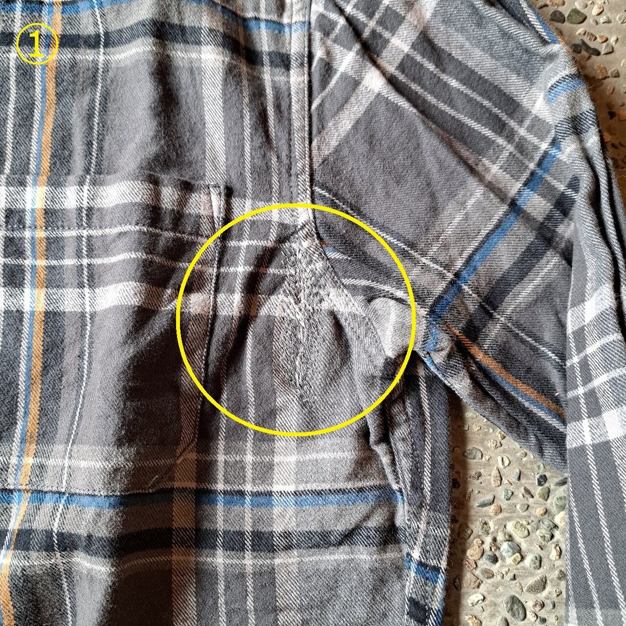 ●状態:①左脇リペアあり。②前裾汚れあり。