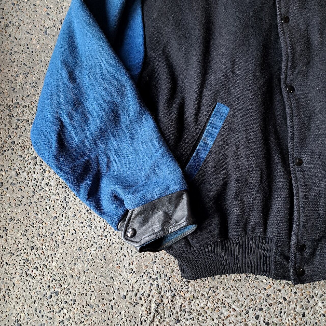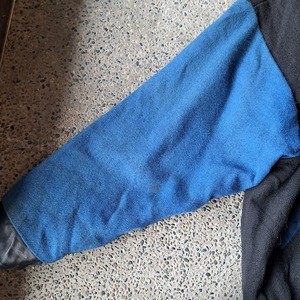 ●状態:両袖など、ブルーの部分汚れあり。①内ポケット縫製外れあり。